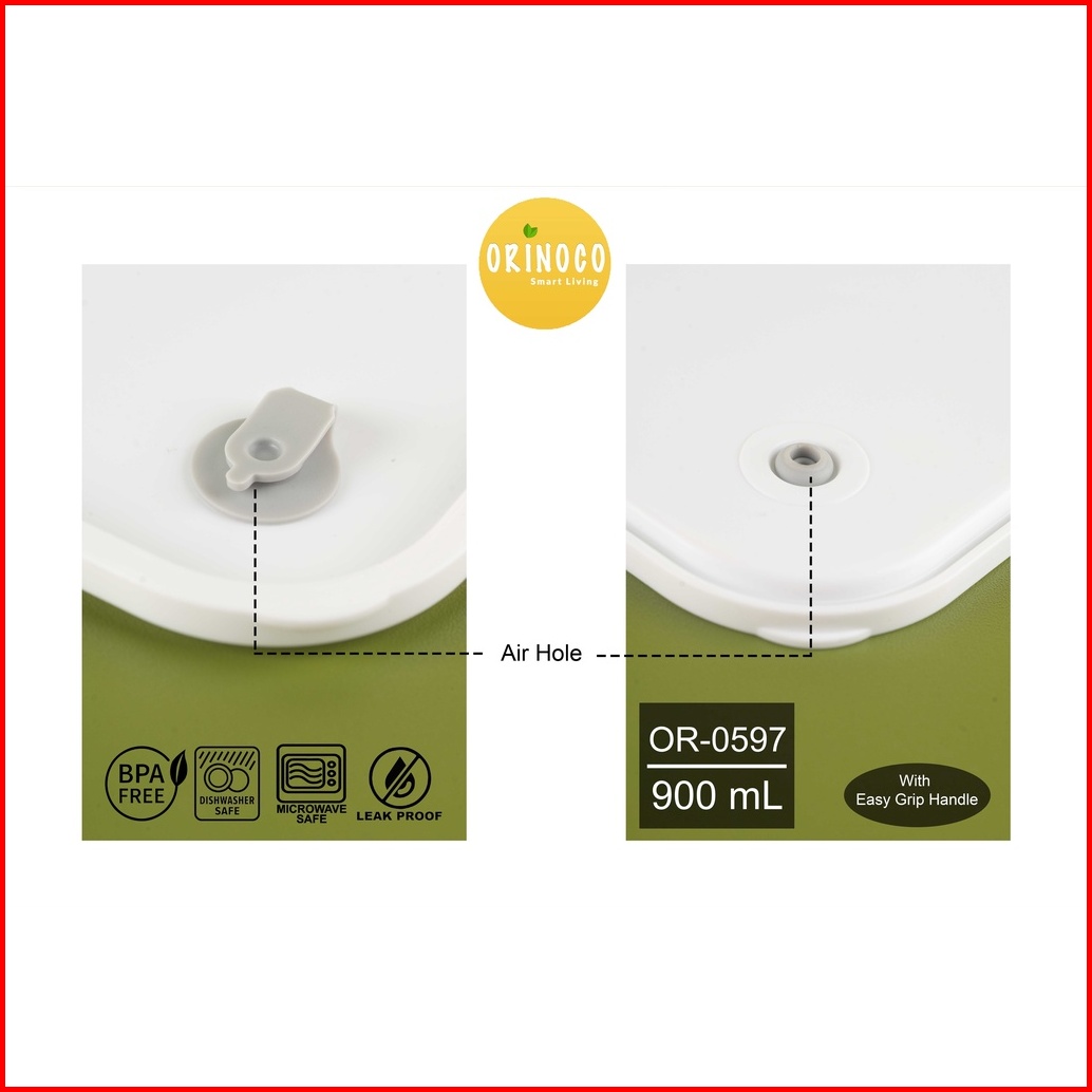 Orinoco Kotak Makan 1 Layer Free Sendok Sumpit Or-0597 Lunchbox Ukuran 900 Ml Dengan Handle Tenteng Kokoh Praktis Anti B