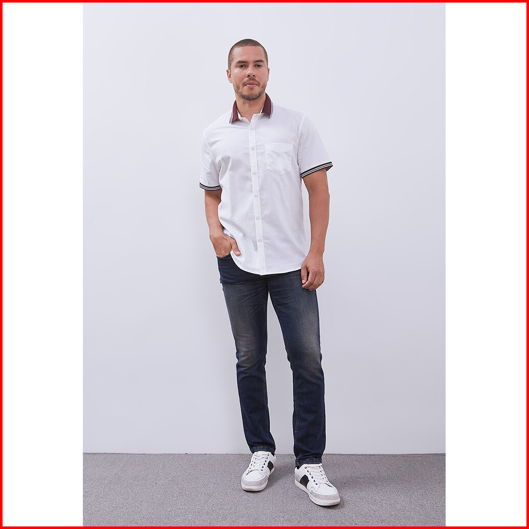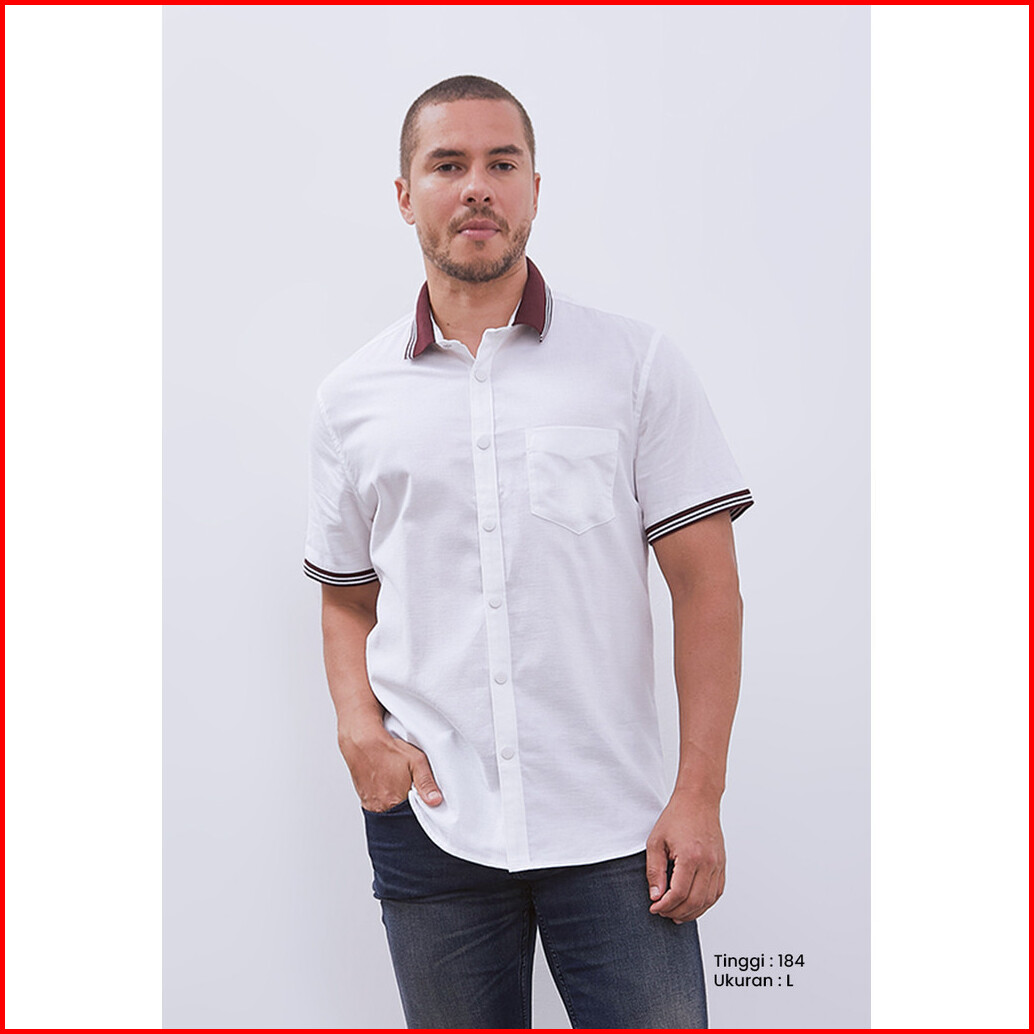 Manzone - Kemeja Oxford Lengan Pendek Pria Turner Slim Fit - White