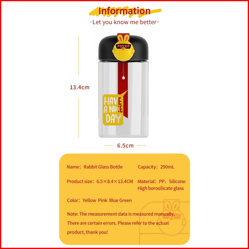 Orinoco Botol Minum Kaca Cute Rabbit J-2412 Glass Bottle 290 Ml Bpa Free