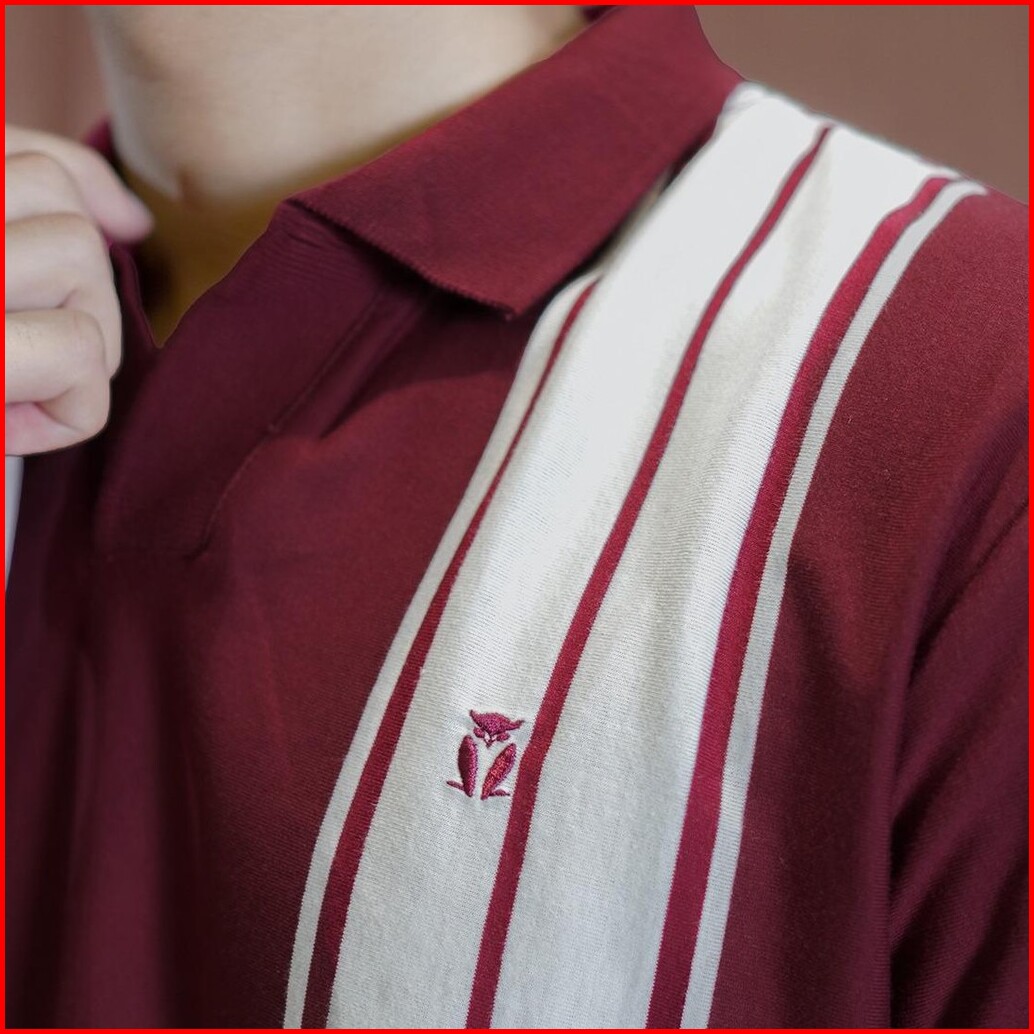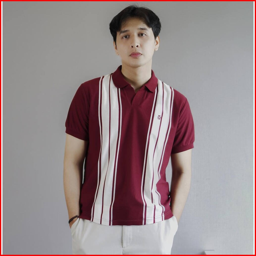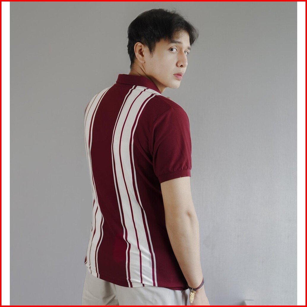 Matsuda Baju Kaos Polo Shirt Dewasa Stripe Pria Kerah Katun Sumida Burgundy