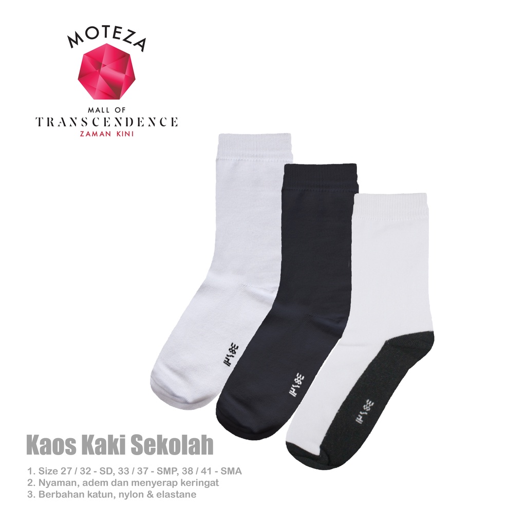 Moteza Kaos kaki Anak SEKOLAH | SD SMP SMA | Putih Telapak Hitam | Putih Polos | Hitam Polos | Katun - 1 Pcs