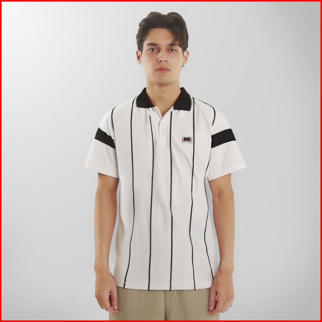 Matsuda Baju Kaos Polo Shirt Dewasa Stripe Pria Kerah Katun Yamaguchi White