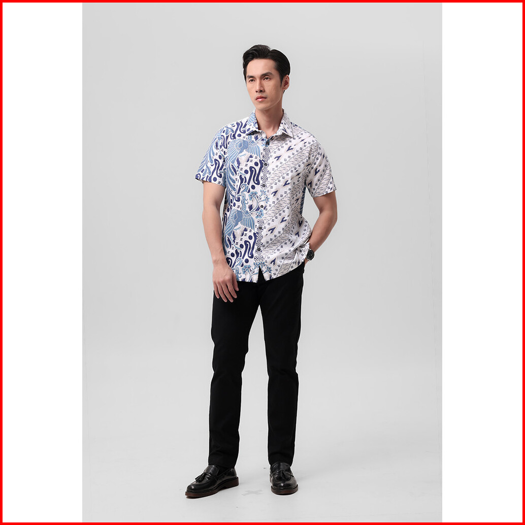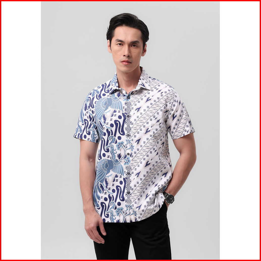 Manzone - Kemeja Batik Lengan Pendek Pria Kripawarman Modern Fit - White
