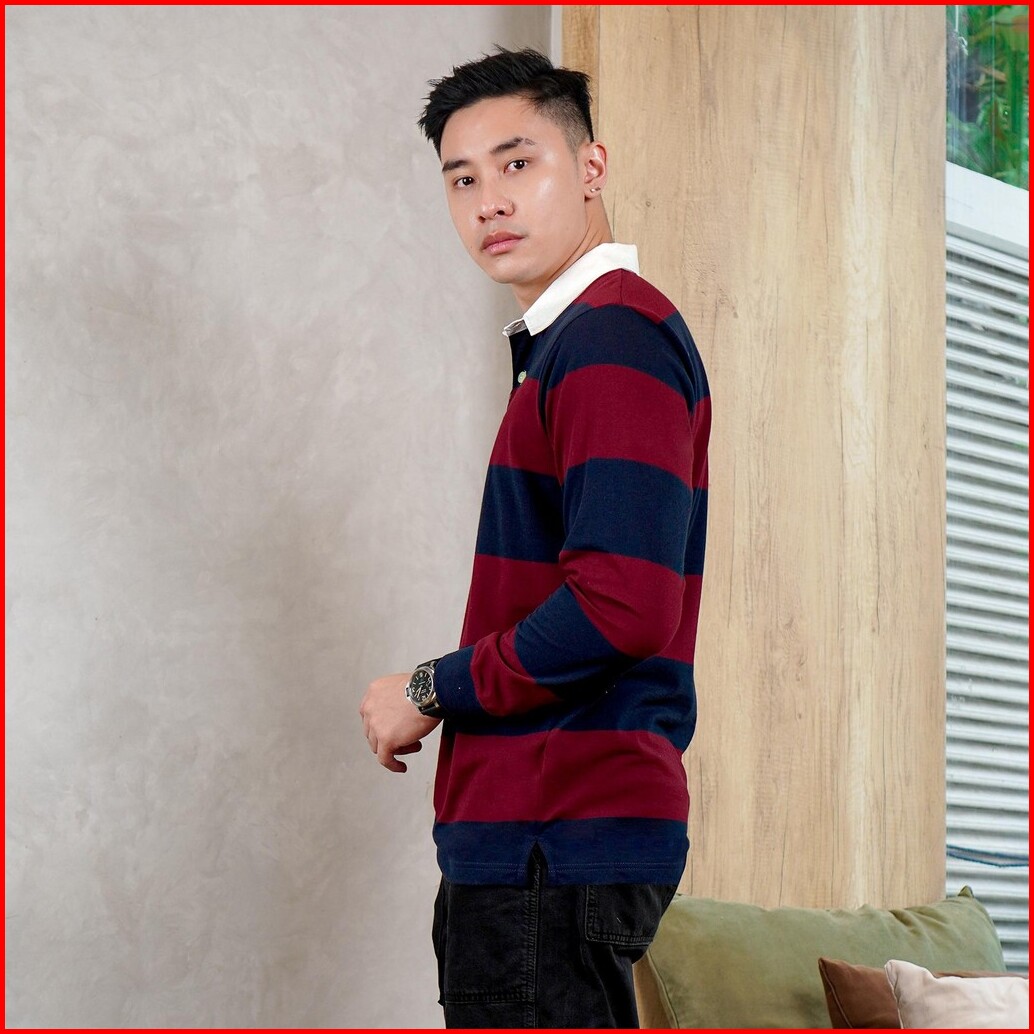 Matsuda Kaos Rugby Polo Shirt Katun Pria Lengan Panjang Nagai Navy Burgundy