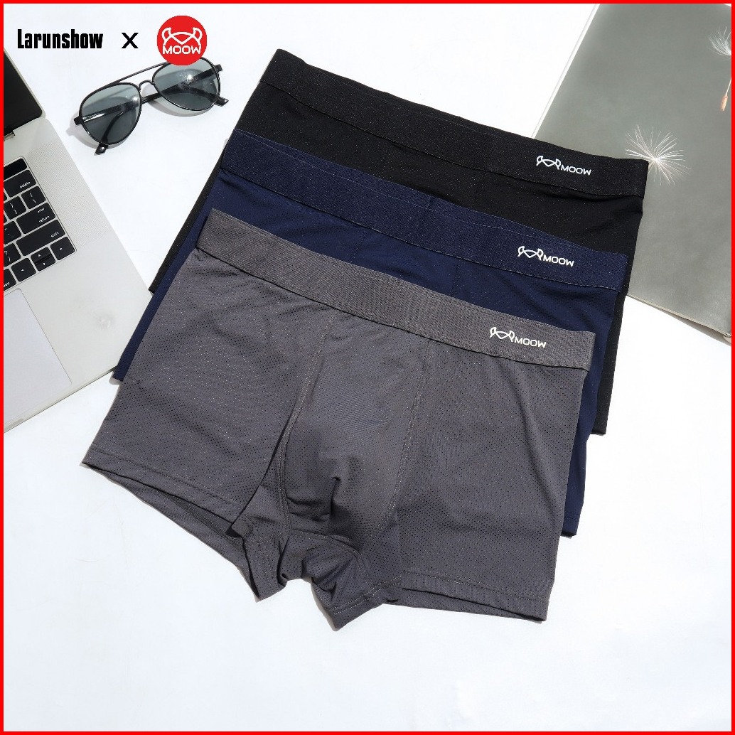 Larunshow X Moow Paket 3 Pcs Celana Dalam Pria Boxer Icesilk Premium Tipis Lubang Kecil Antibakteri Mpl55