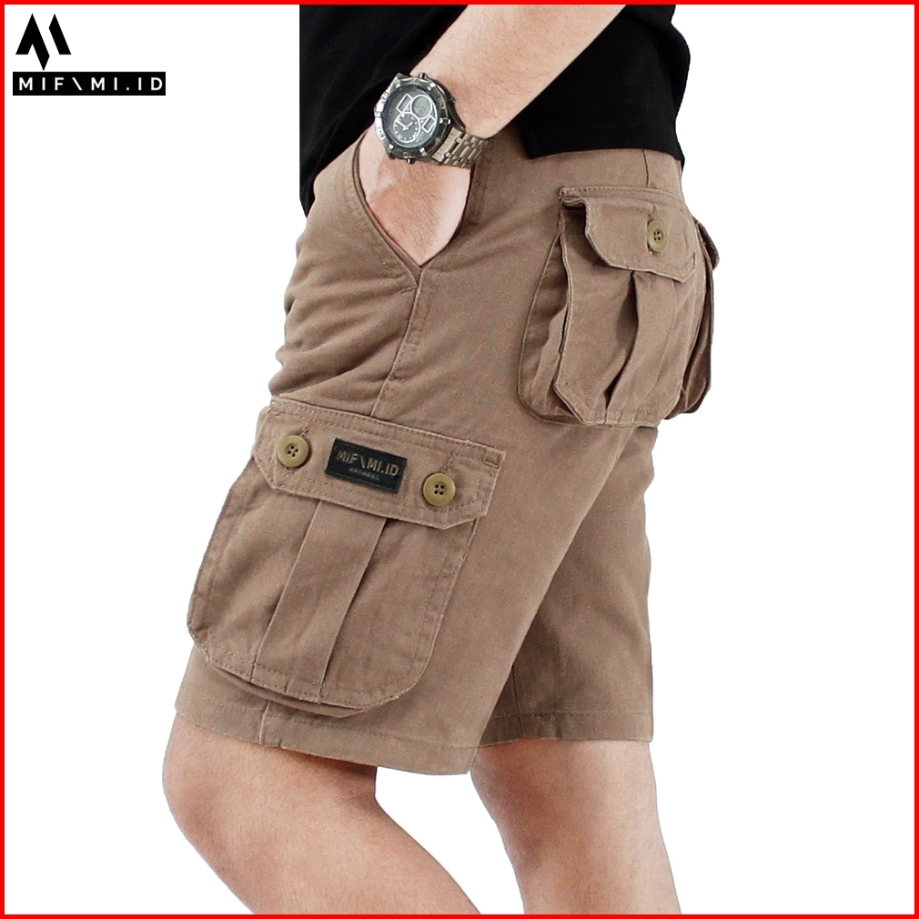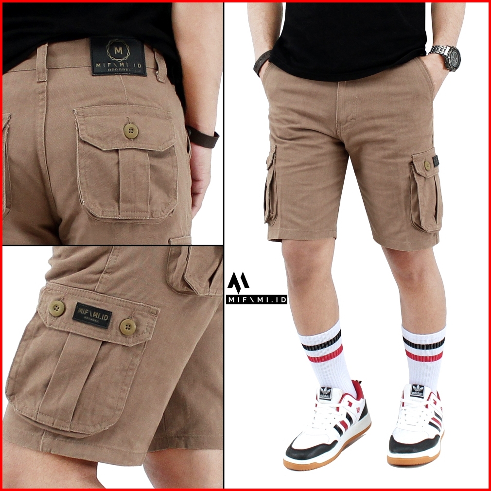 Mifami.id Celana Cargo Pendek Pria Moca