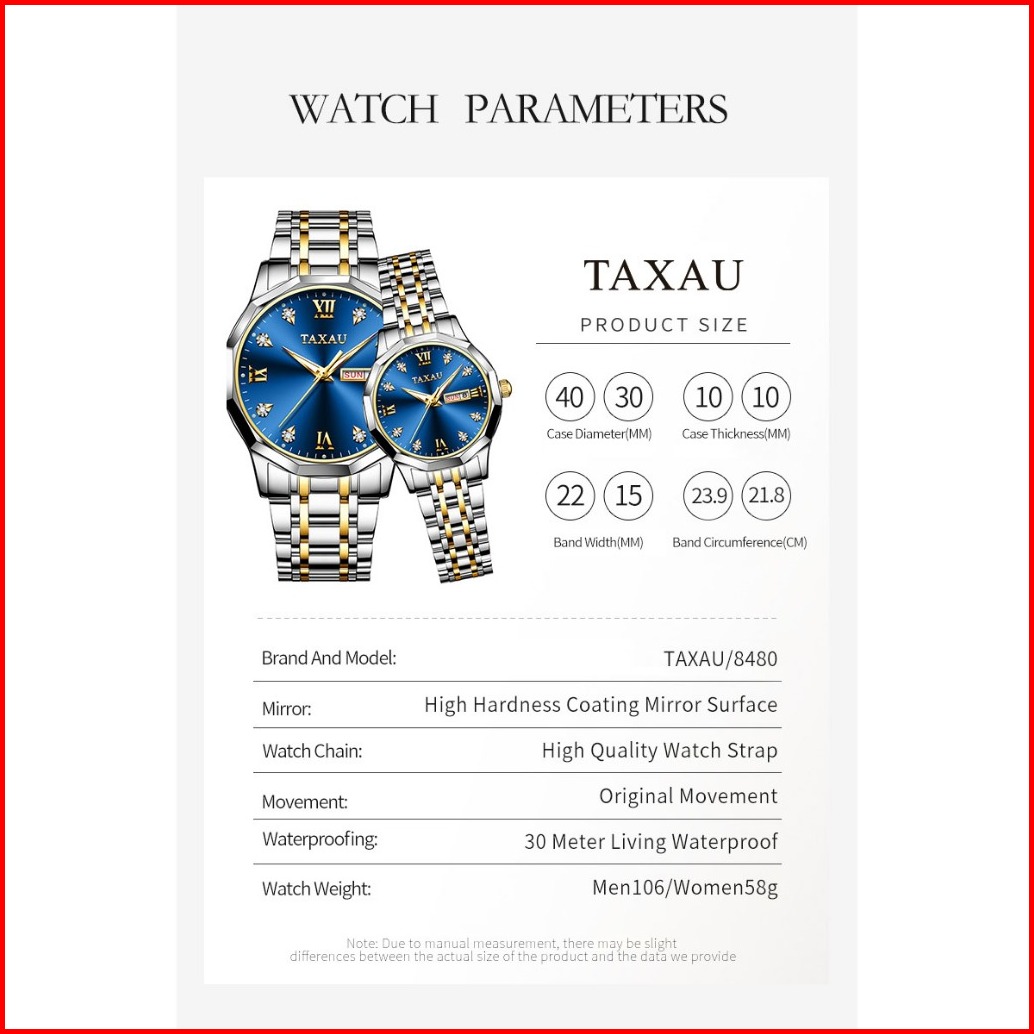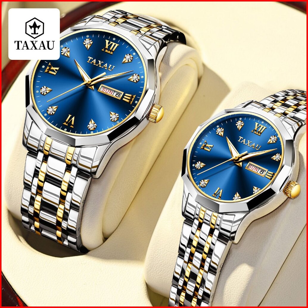 Taxau Jam Tangan Couple Original Pasangan Anti Air Stainless Steel Terbaru 2024 Analog Watch Quartz