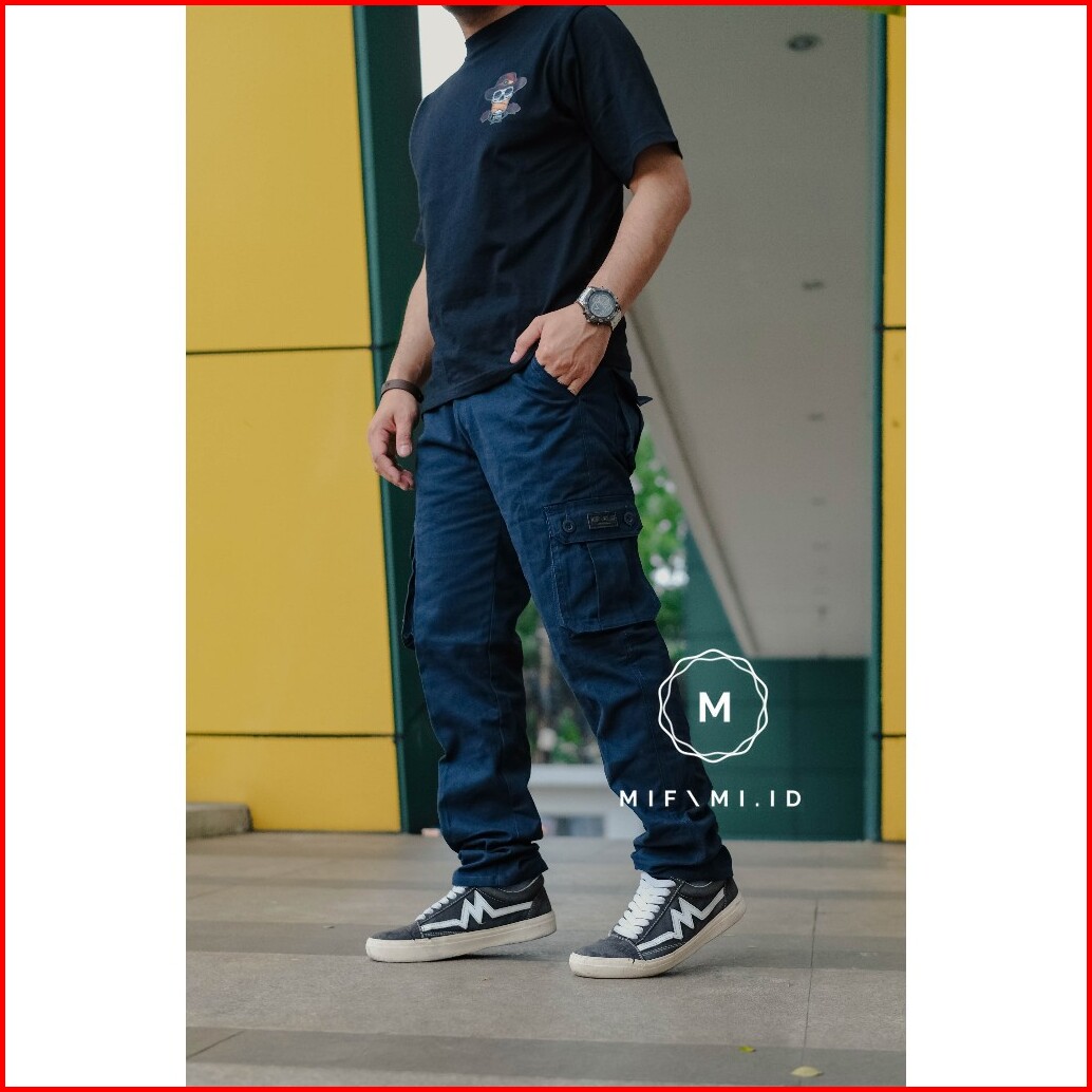Mifami.id Celana Cargo Panjang Pria Warna Navy