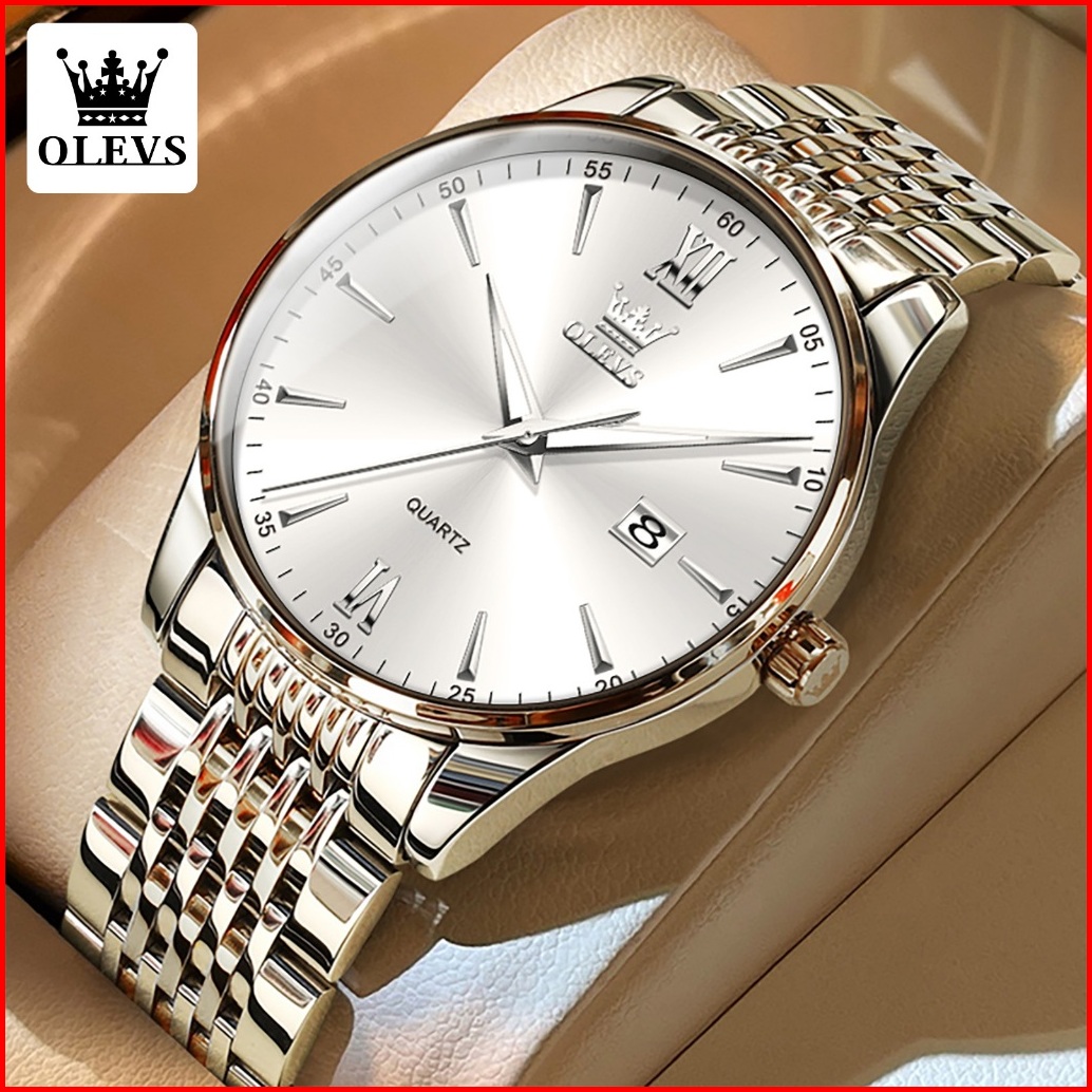 Olevs Jam Tangan Mewah Pria Original 100 Anti Air Stainless Steel Strap Quartz Cowok Analog Arloji Kalender 5009