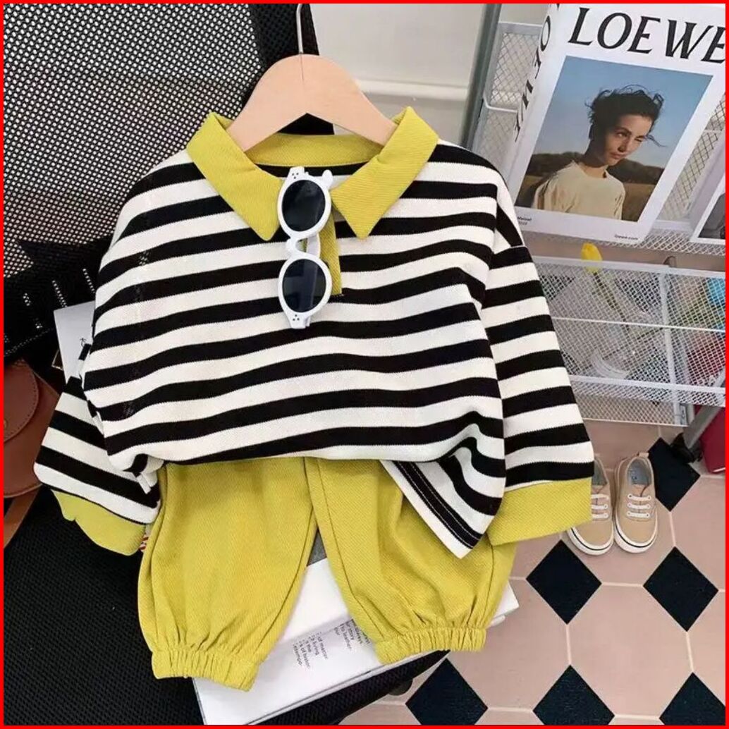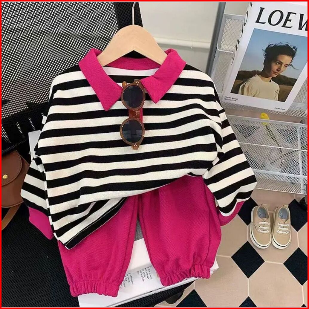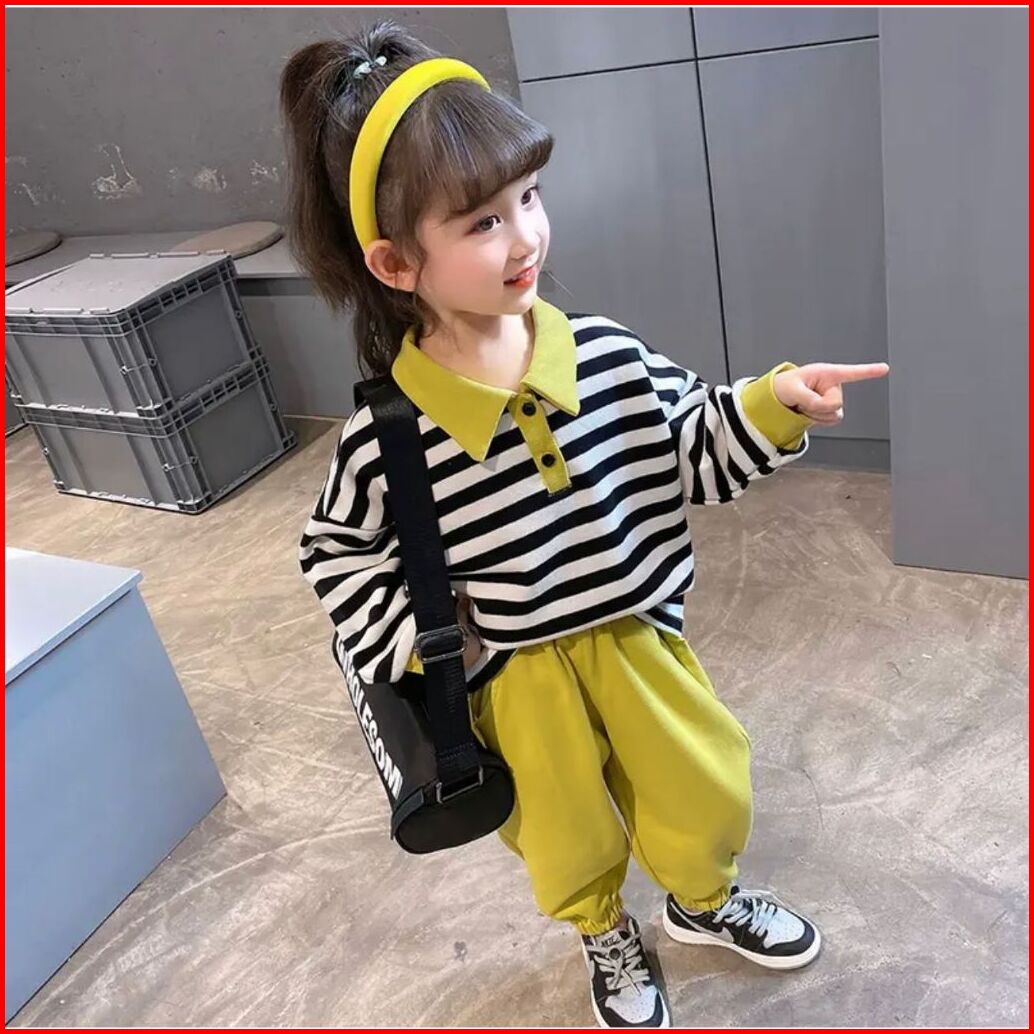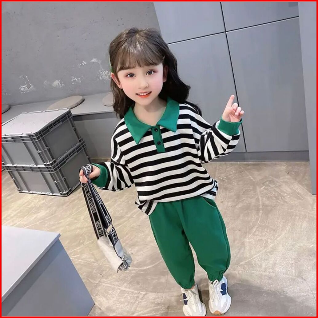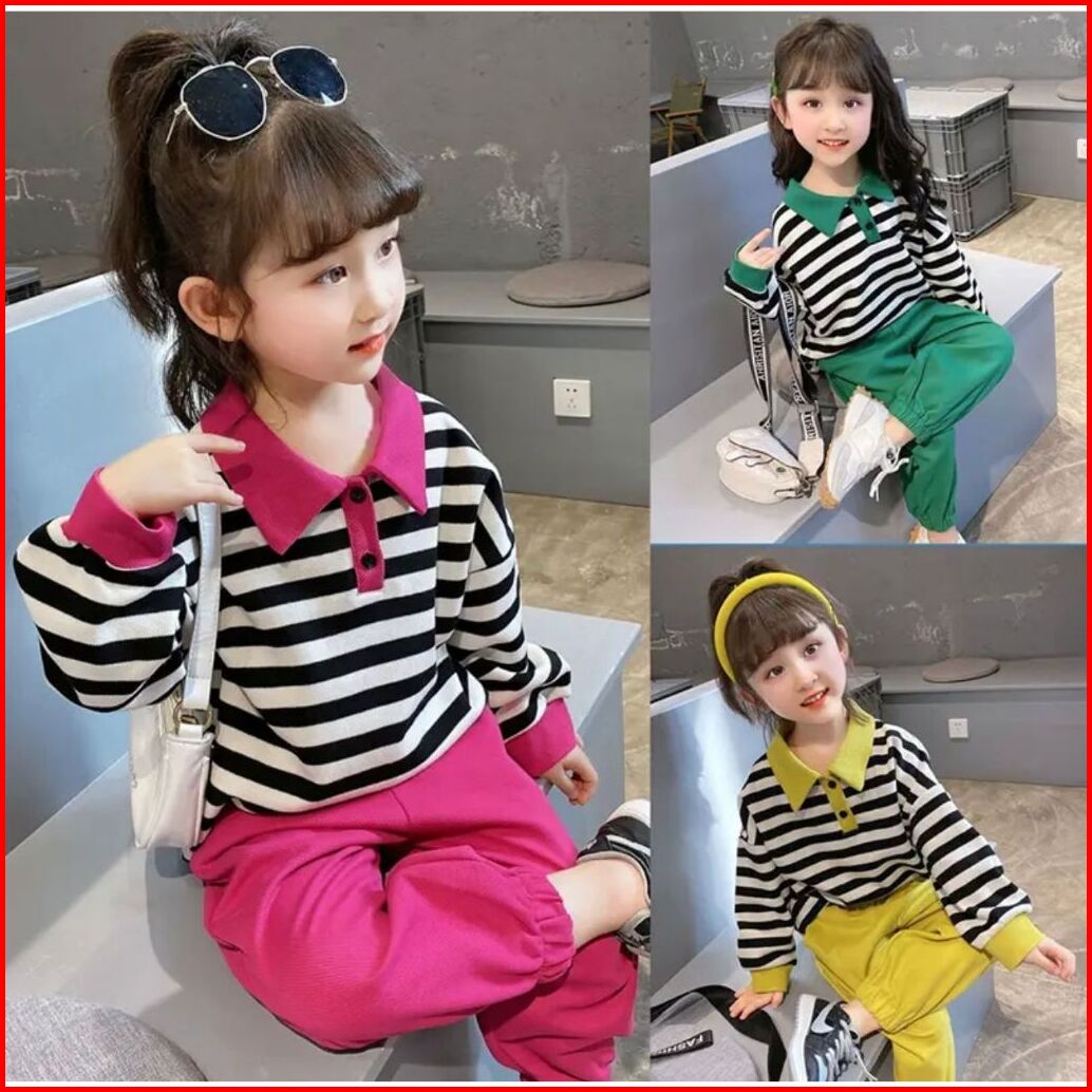 Setelan Baju Anak Perempuan Sweater Rainbow Set Salur Panjang Pakaian Modis Anak Perempuan Musim Dingin 1-5tahun