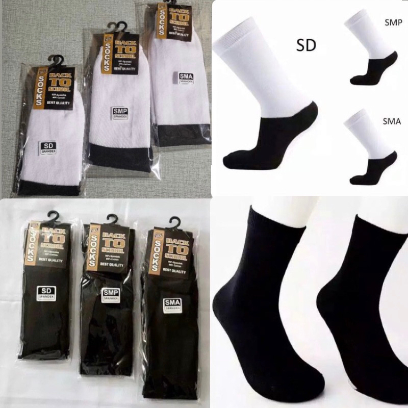 kaos kaki Anak sekolah SD SMP SMA Hitam putih dan hitam polos / Kaos kaki sekolah SD SMP SMA sebetis
