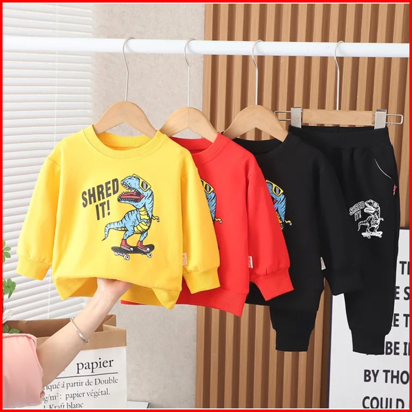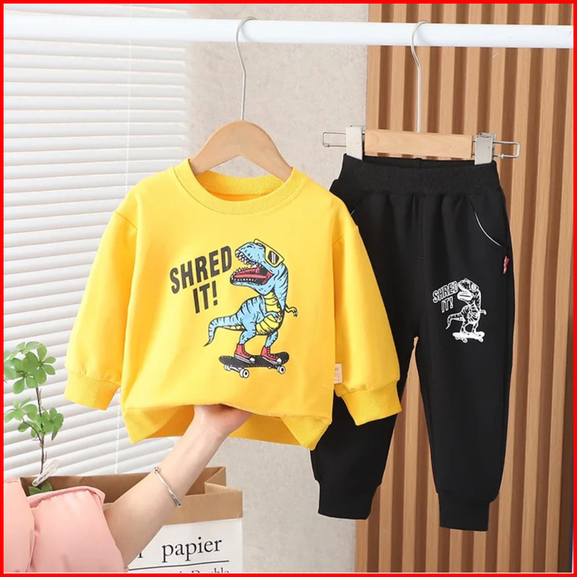 Setelan Anak Laki Laki Set Baju Panjang Anak Motif Dino Umur 3bulan-5tahun
