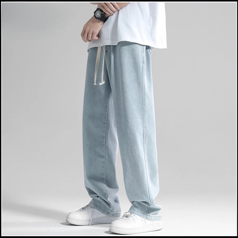 Celana jeans pria pinggang karet korean style loose pants kulot jeans biru muda oversize Jumbo Tali Serut Wide leg celana jeans cowok panjang nyaman Santai denim premium