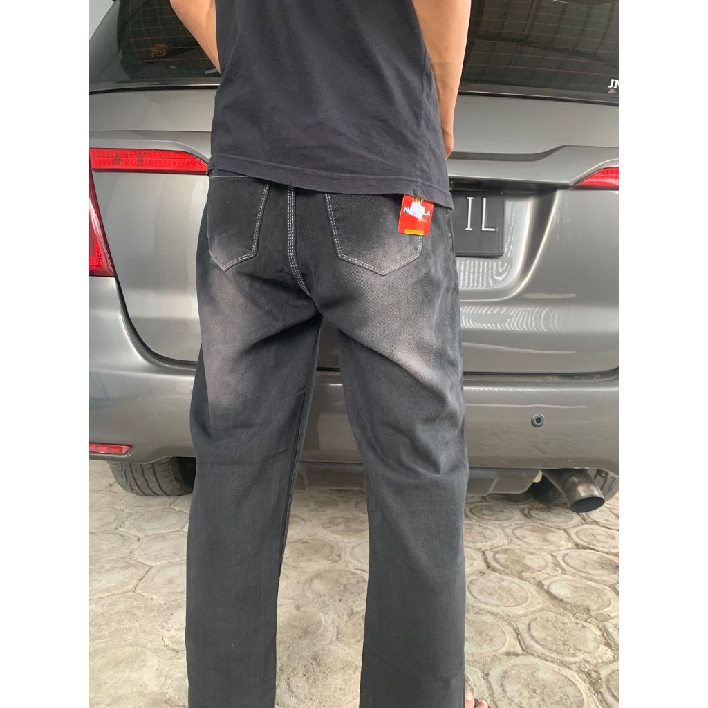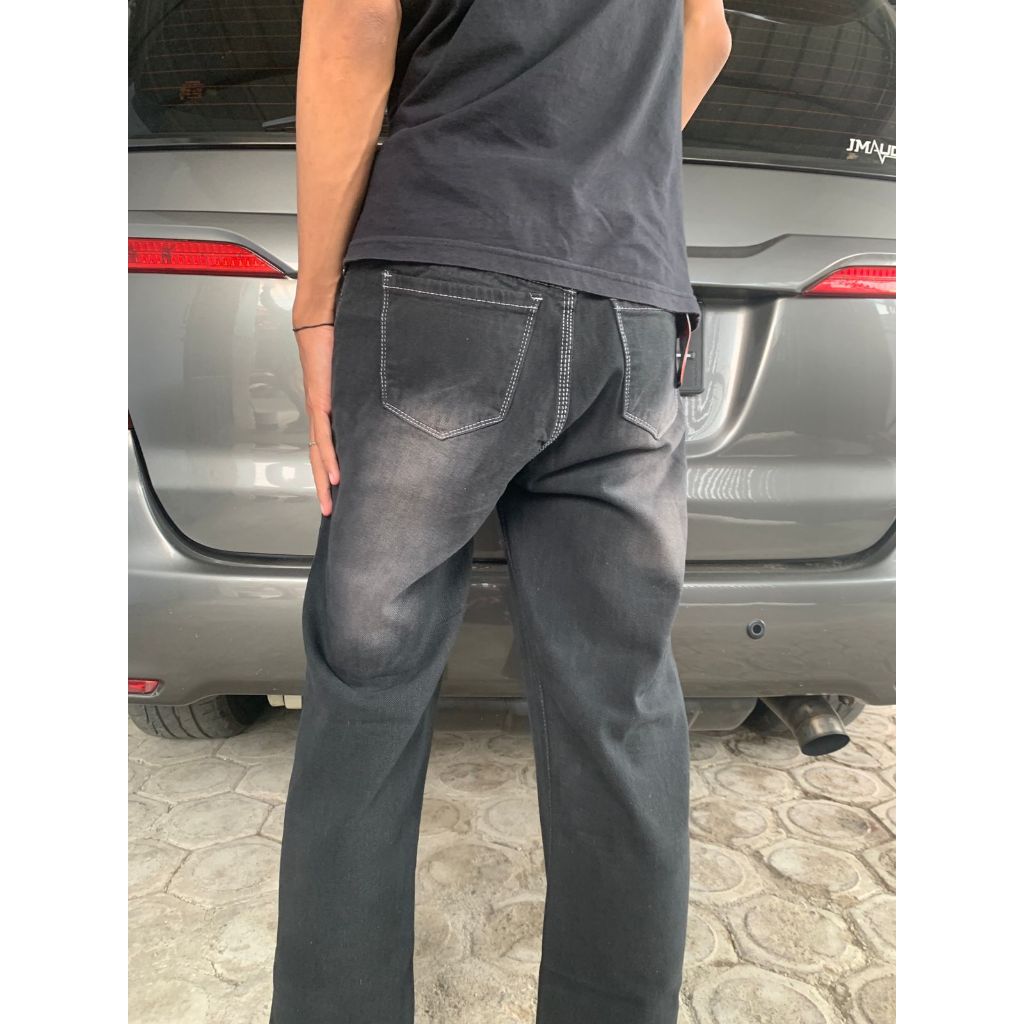 Mudzabit Celana Jeans Pria dan Wanita Kulot Oversize Black Pants Baggy Denim Loose Korean Gombrang Panjang Cowok Style