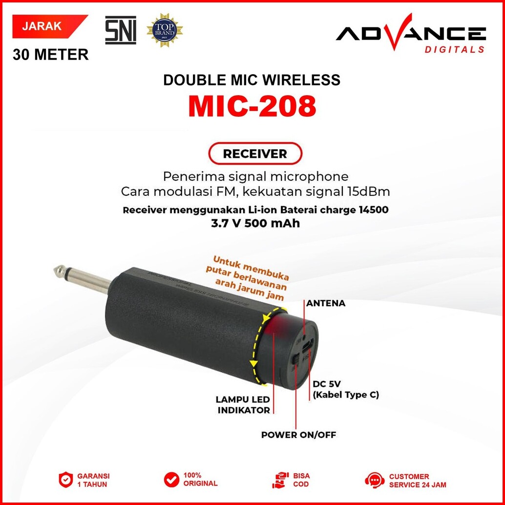 Advance Mic-208 Double Mic Wireless Recharger Bisa Digunakan Untuk Souncard Speaker Garansi Resmi 1 Tahun