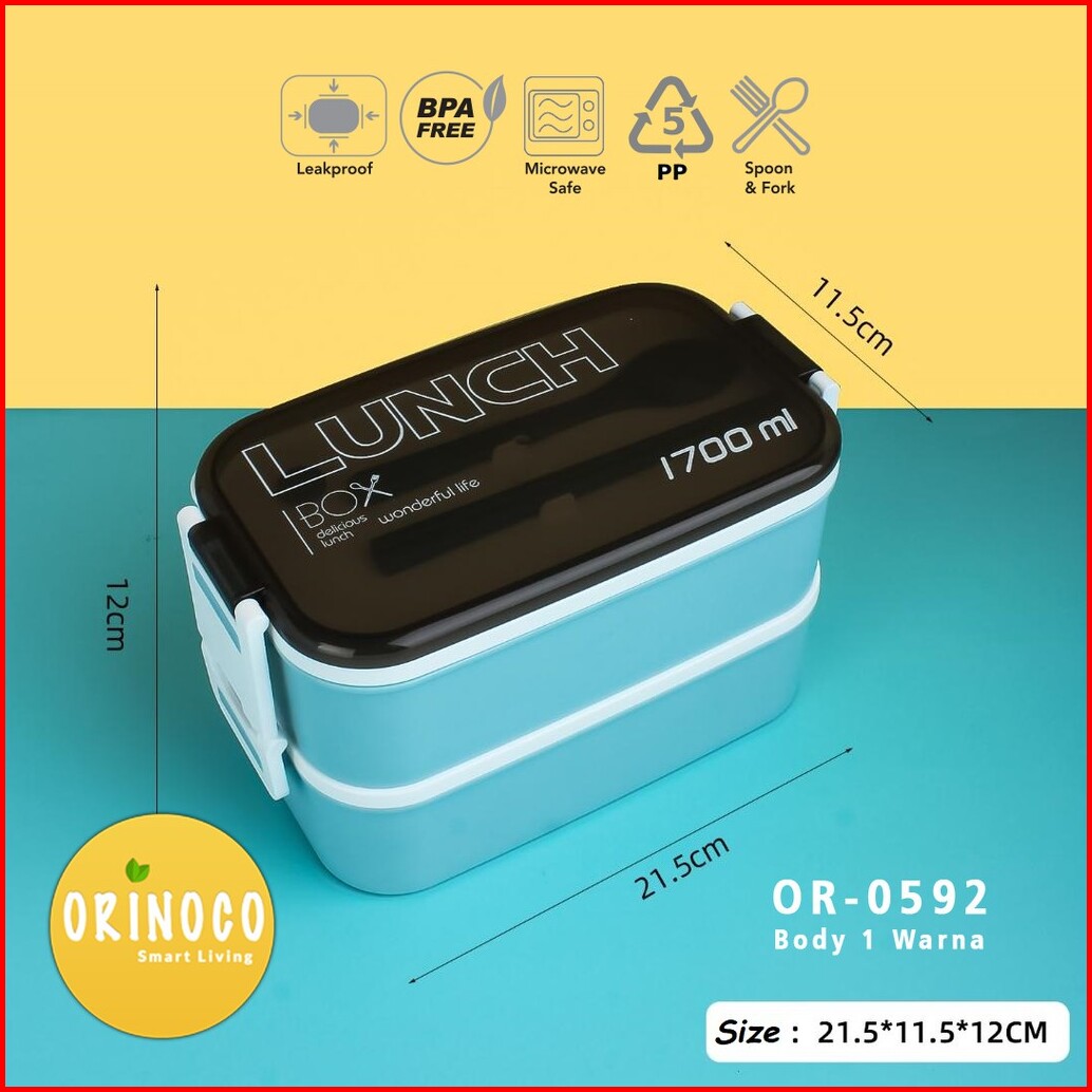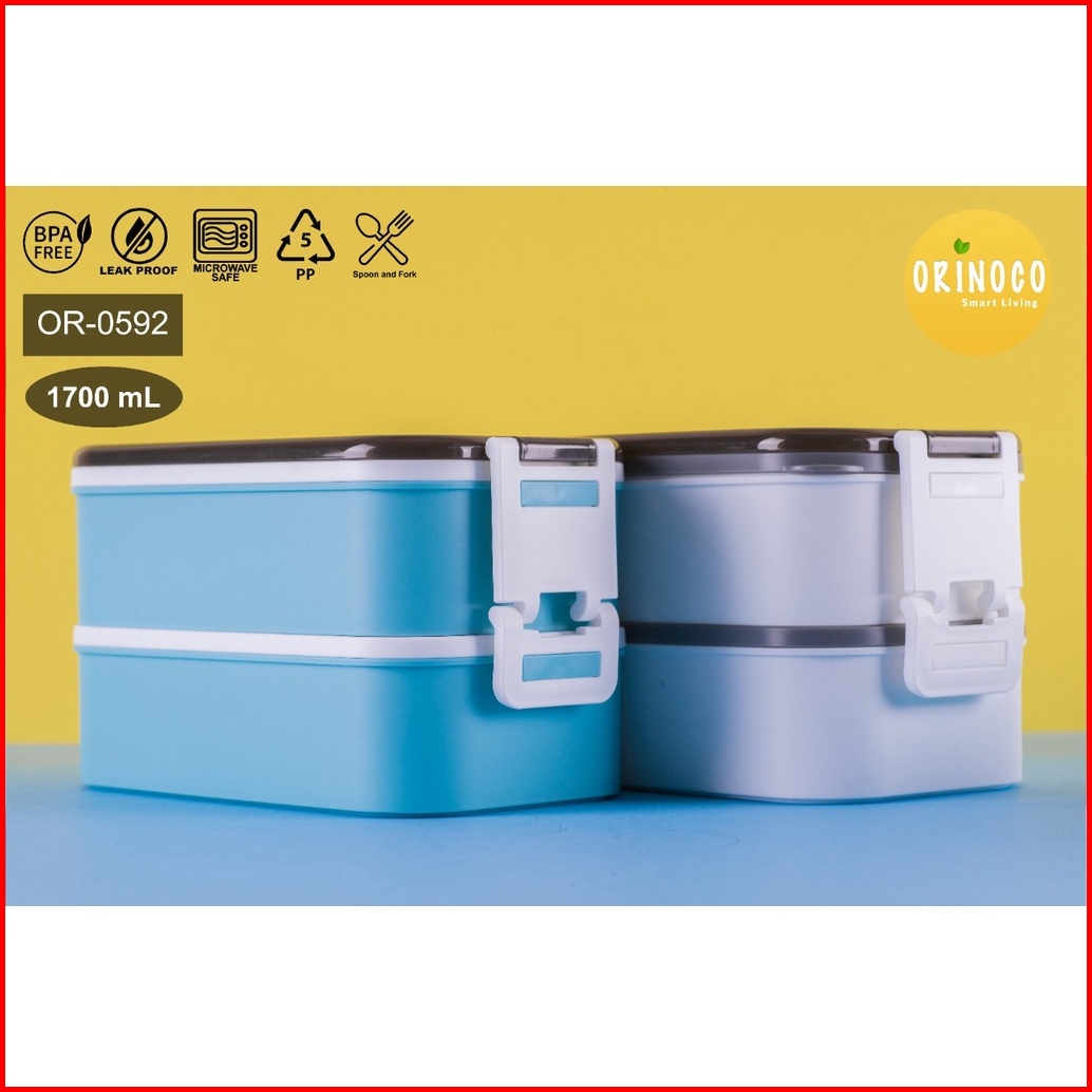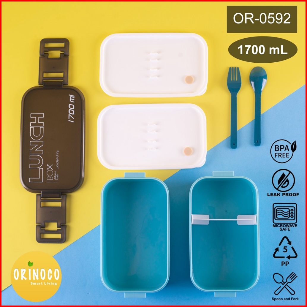 Orinoco Kotak Makan Ukuran Besar 1700 Ml Anti Tumpah 2 Susun Layers Free Sendok Garpu Or-0592