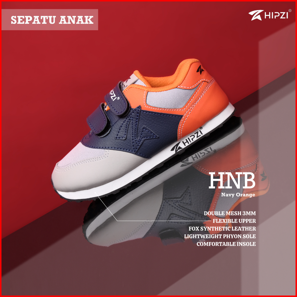 Hipzi Sepatu Anak Sneaker Anak Kecil Cewek Cowok Perempuan Laki Laki Sport Sekolah Sd Tk Paud Hnb Abu Navy Orange