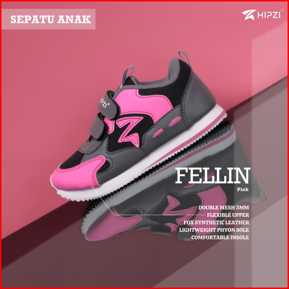Hipzi - Sepatu Anak Felin Kids Warna Pink Size 26-35 Sekolah Laki Laki Perempuan Olahraga Terbaru