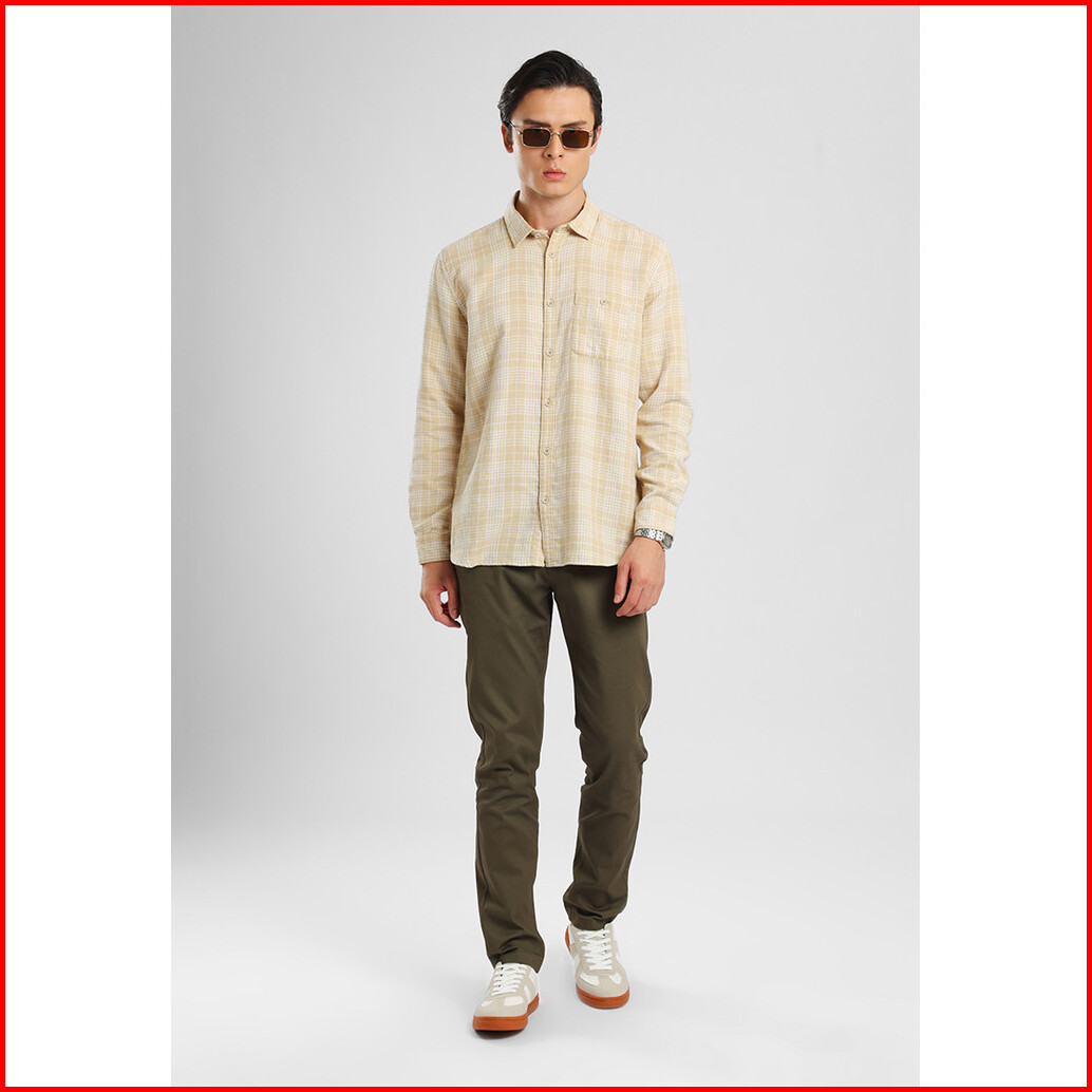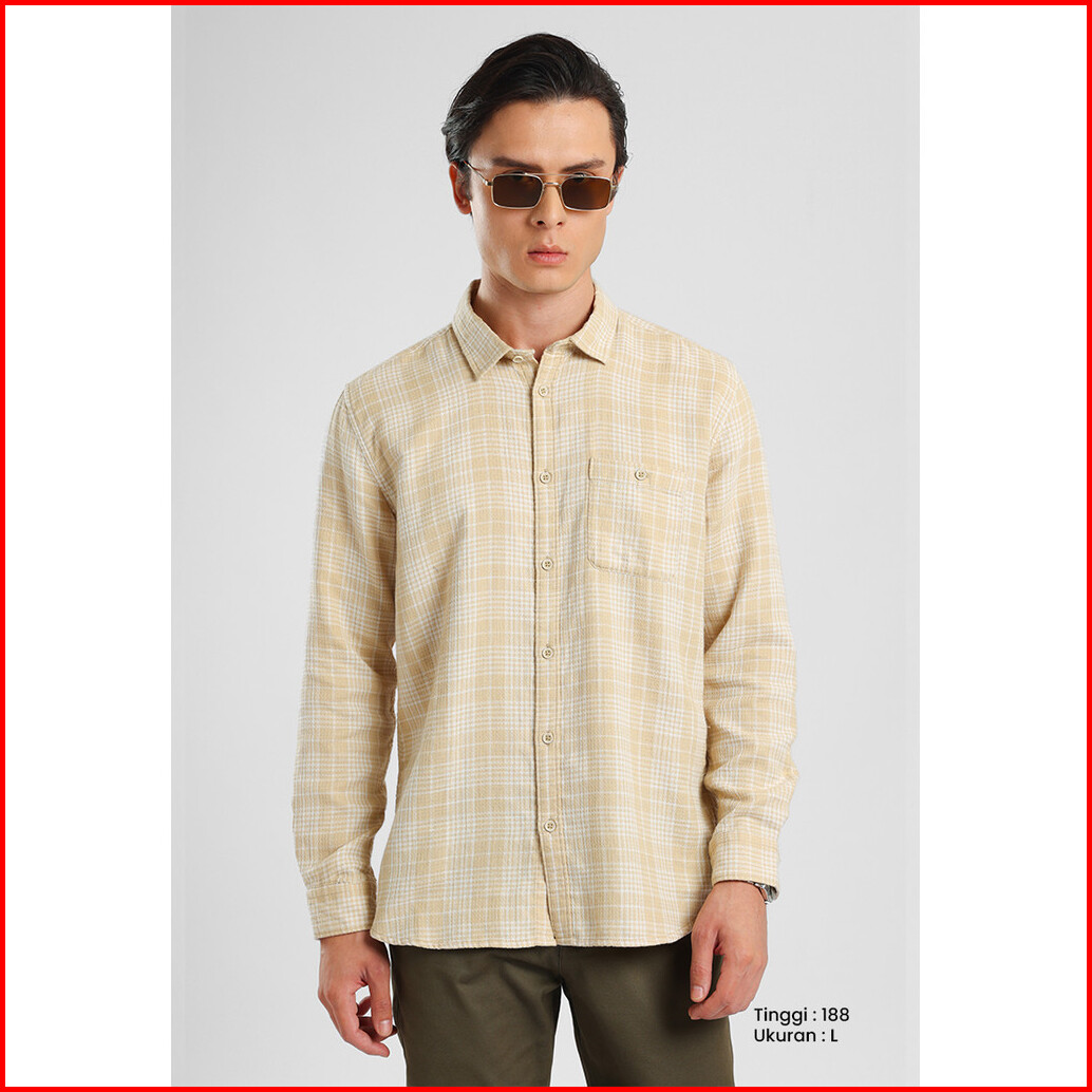Manzone - Kemeja Dobby Lengan Panjang Pria Alexei Comfort Fit - Khaky