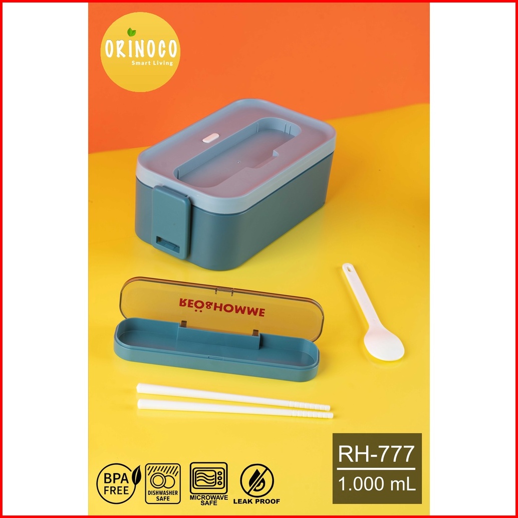 Promo Orinoco Kotak Bekal 1000 Ml Seri Rh-777 Model 2 Sekat Include Box Sendok Sumpit Portable - Anti Bocor Microwave Di