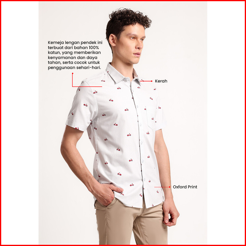 Manzone - Kemeja Oxford Lengan Pendek Pria Kevin 3 Slim Fit - Grey