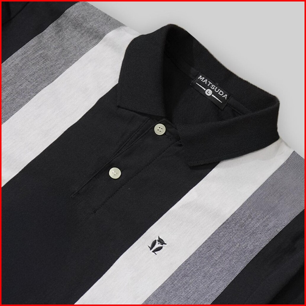 Matsuda Kaos Polo Shirt Katun Pria Lengan Panjang Matsue Black