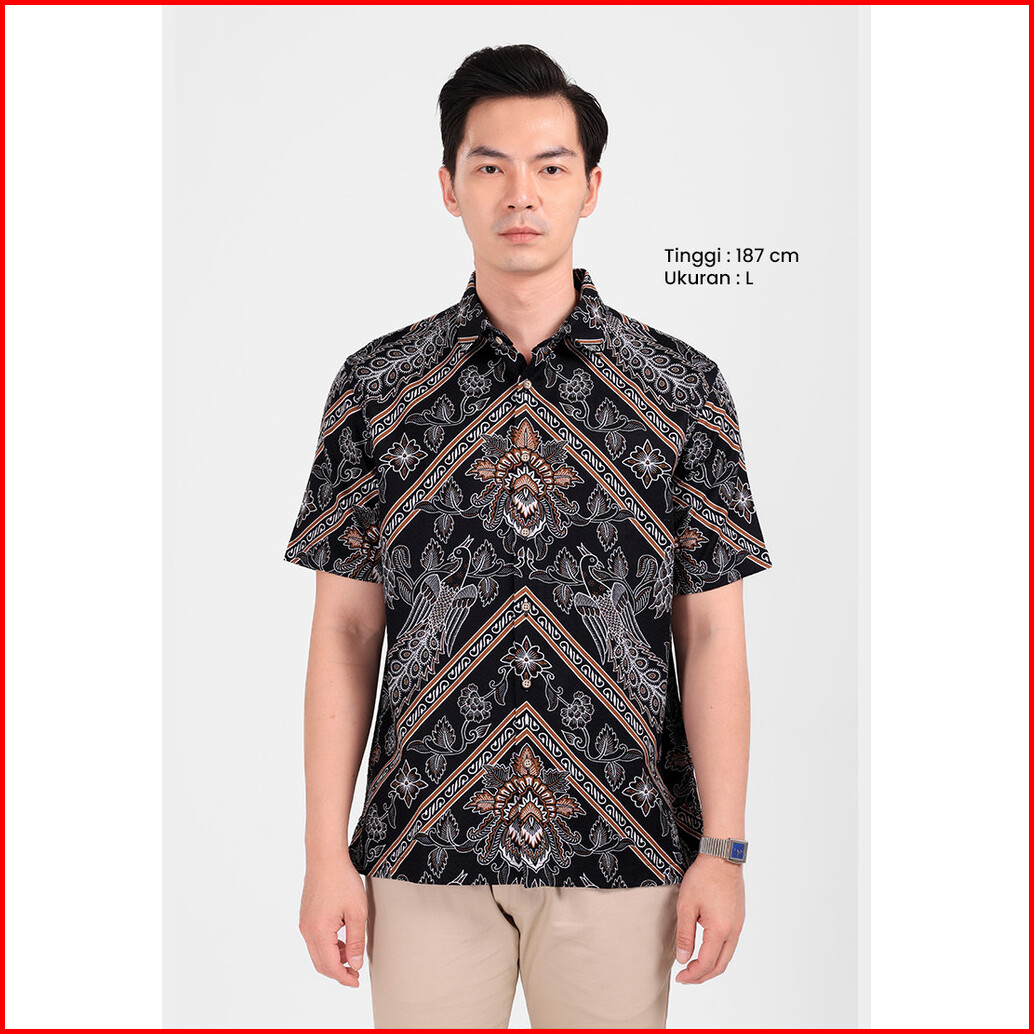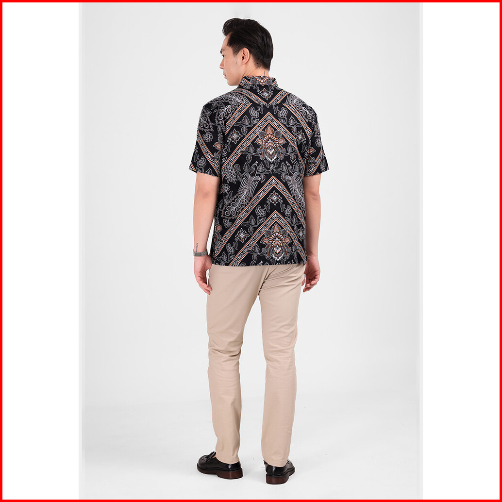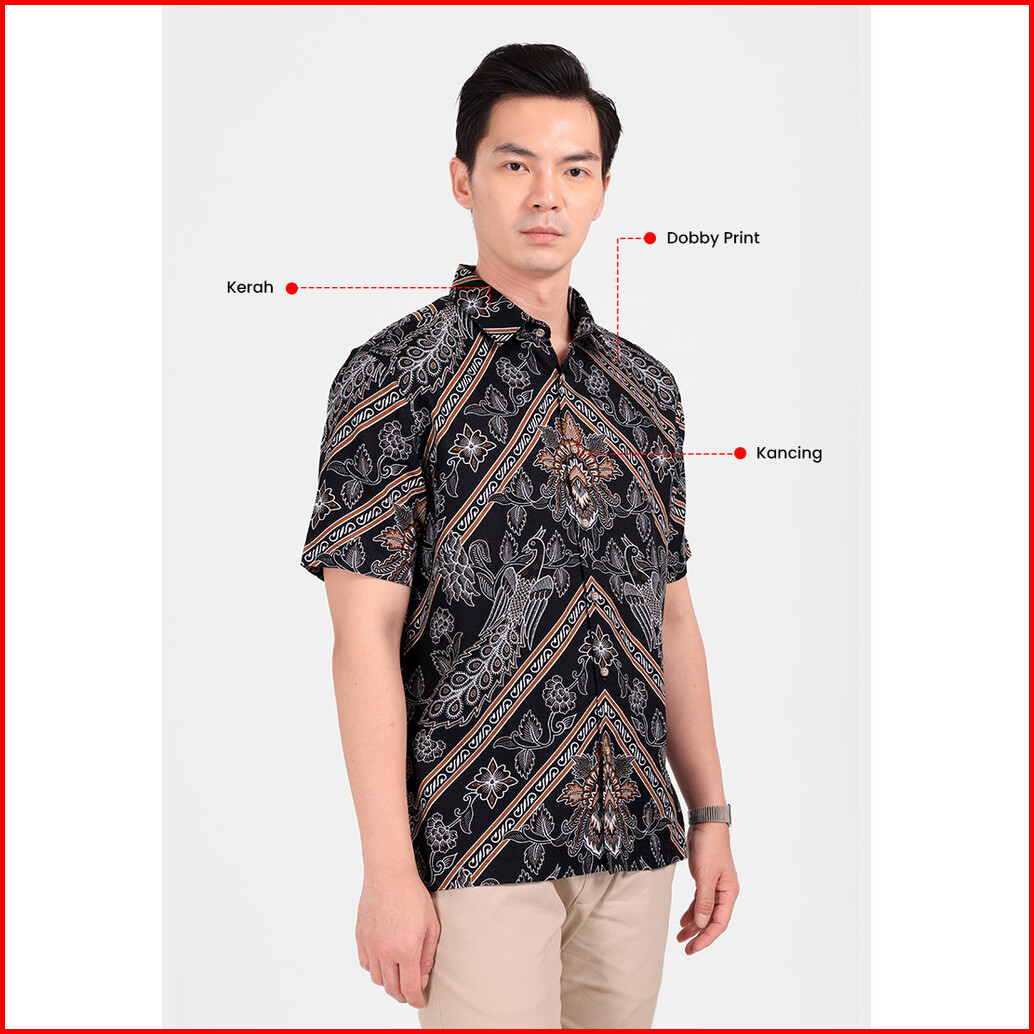 Manzone - Kemeja Batik Lengan Pendek Pria Sayaka 6 Comfort Fit - Black
