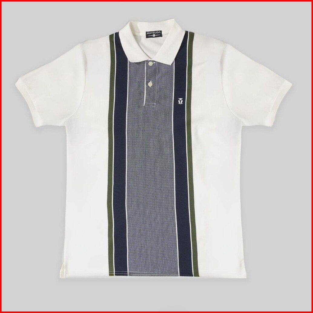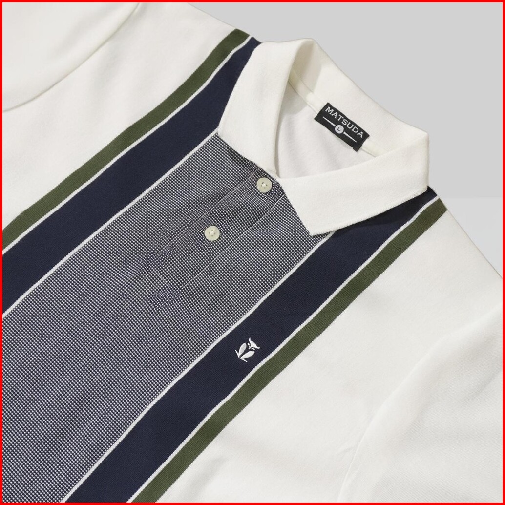 Matsuda Baju Kaos Polo Shirt Dewasa Stripe Pria Kerah Katun Wajima Offwhite