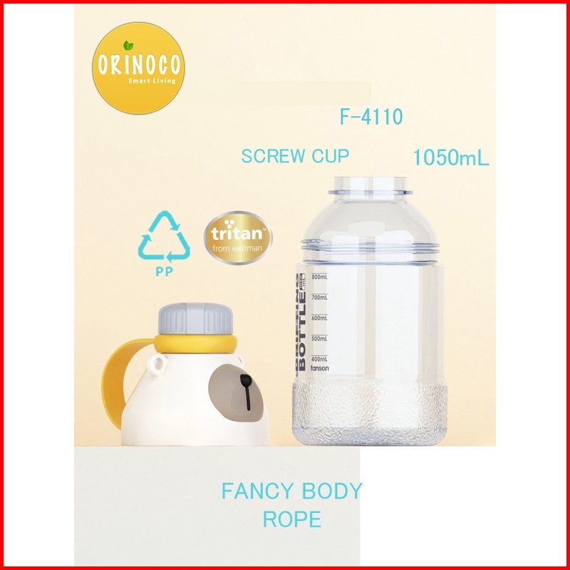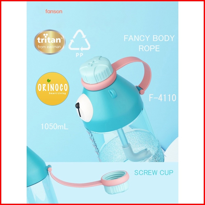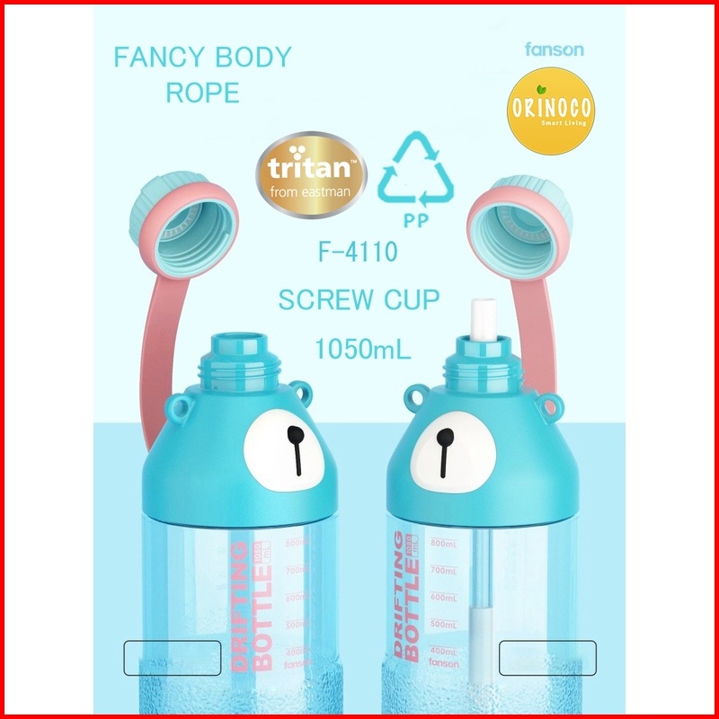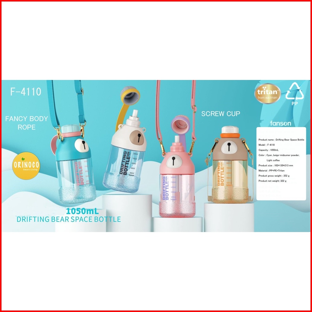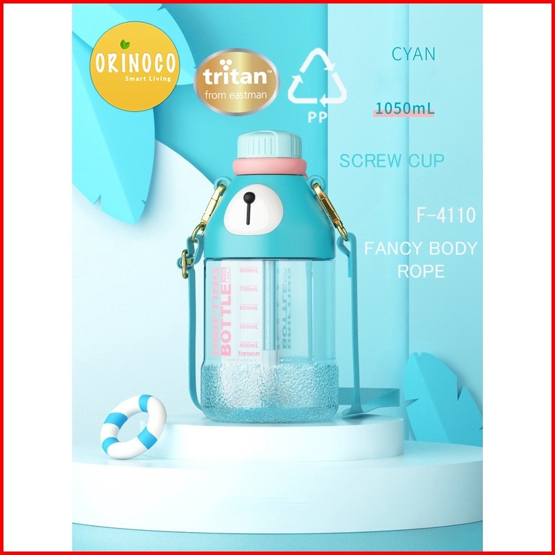 Orinoco Botol Plastik Tritan 1050 Ml Model Drifting Bear Space Bottle With Tali Panjang Sedotan Portable F-4109