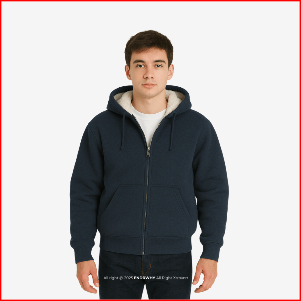 Endrwhy Jaket Hoodie Sherpa Tebal Full Bulu Jaket Hoodie Zipper Sherpa Musim Dingin Pria Wanita Jaket Hangat Original