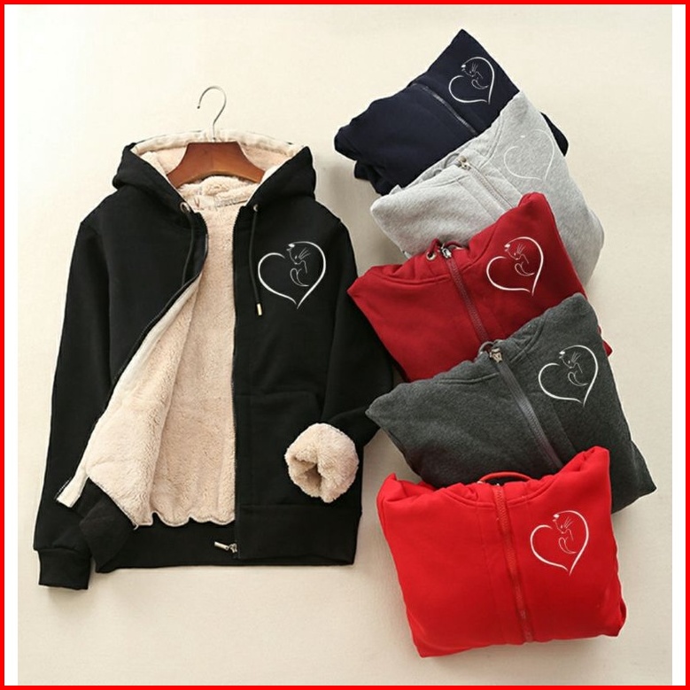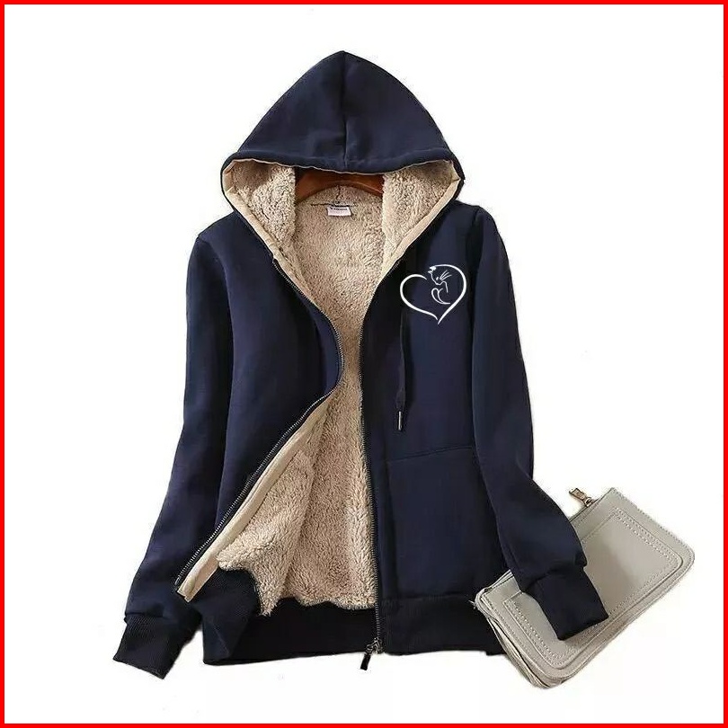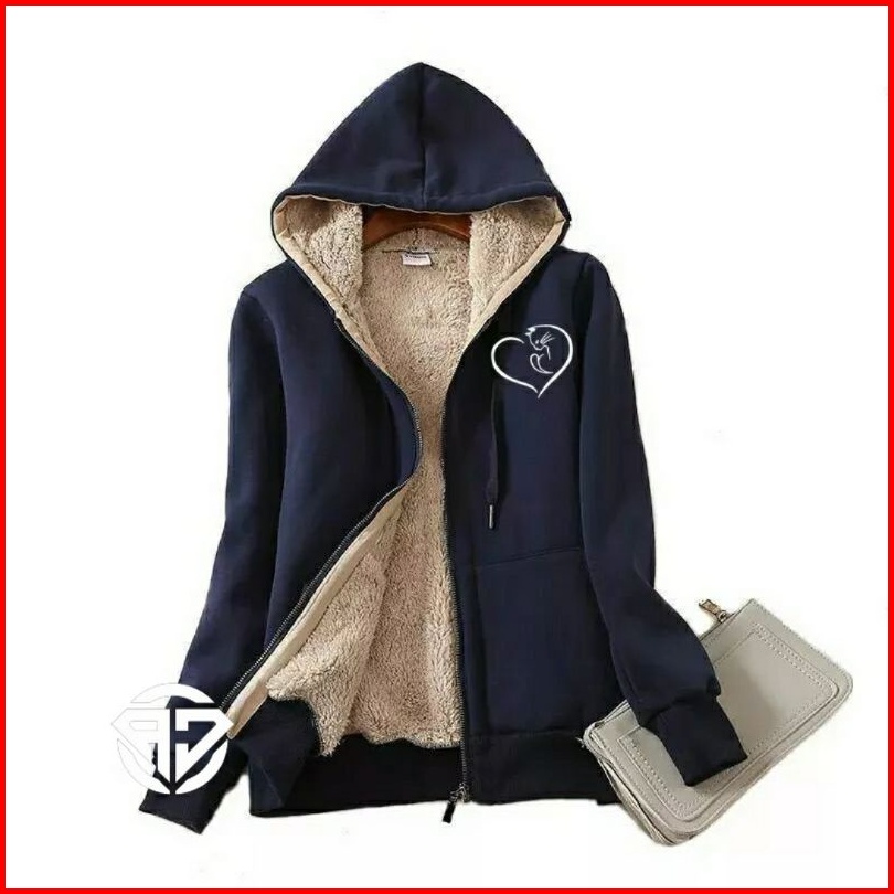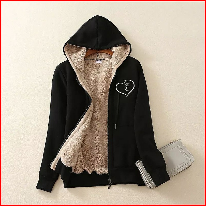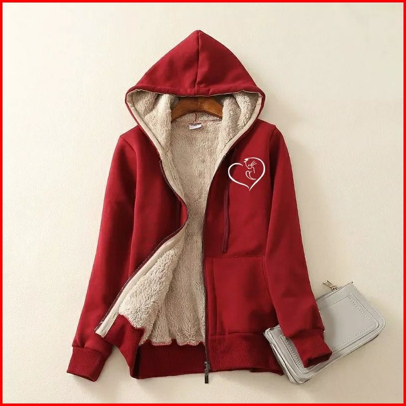 Jaket Hoodie Zipper Musim Dingin Original Jaket Resleting Tebal Lapis Bulu Jaket Sweater Musim Dingin Bahan Fleece Hanga