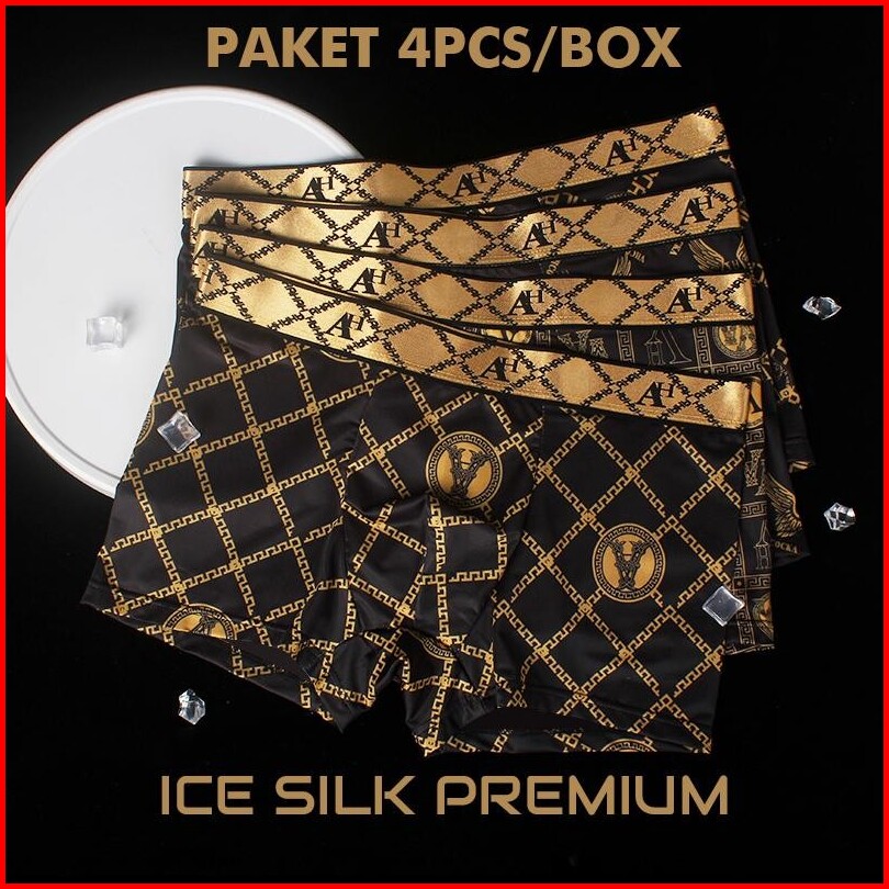 Paket 4pcs Celana Dalam Boxer Pria Ice Silk Premium Golden Metalic Ah Lembut Halus Adem Nyaman Antibakteri Dewasa Cdp18