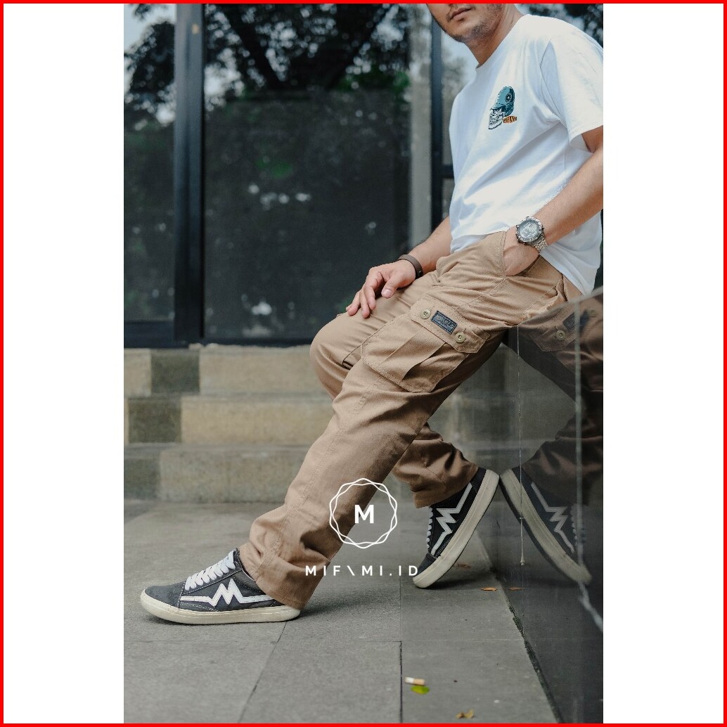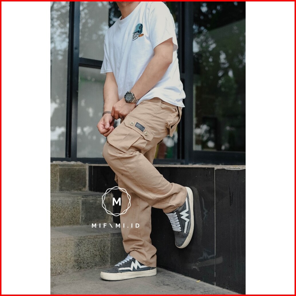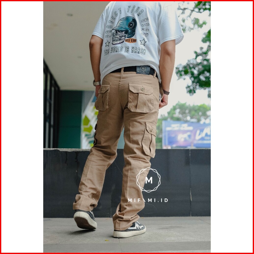 Mifami.id Celana Cargo Panjang Pria Warna Moca