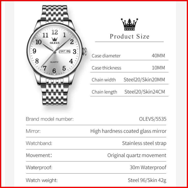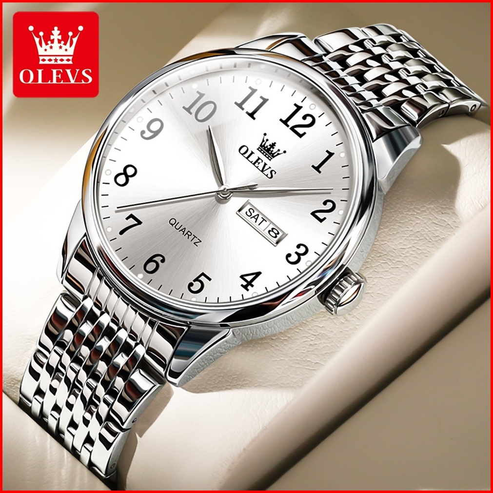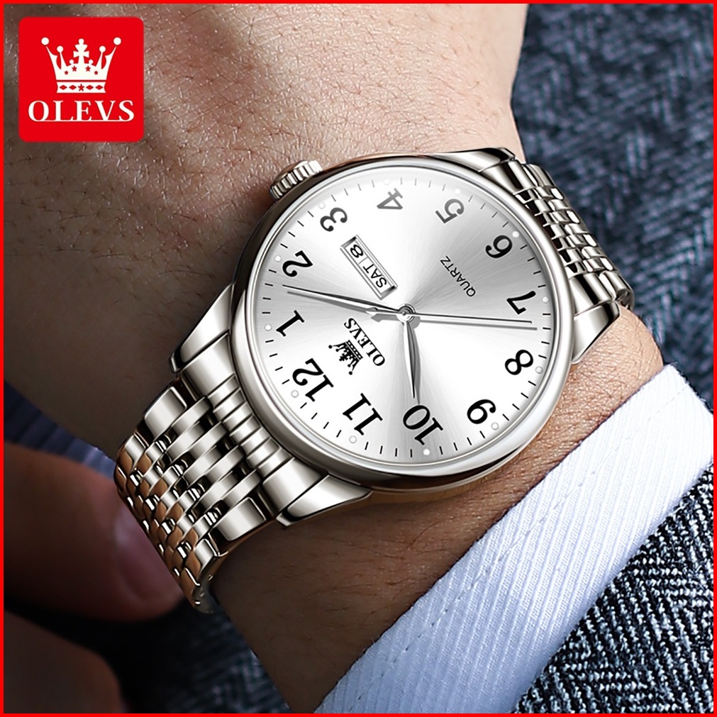 Olevs Jam Tangan Rantai Cowok Ori Anti Air Kalender Kuarsa Stainless Steel Strap Casual Men Watches 5535