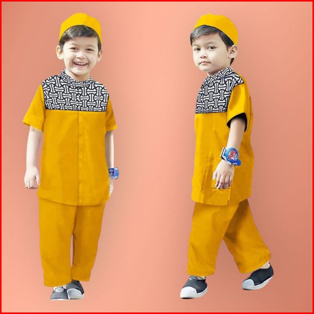 Setelan Koko Muslim Anak Laki Laki Koko Ngaji Anak Koko Kurta Anak Lengan Pendek Umur 1-10tahun