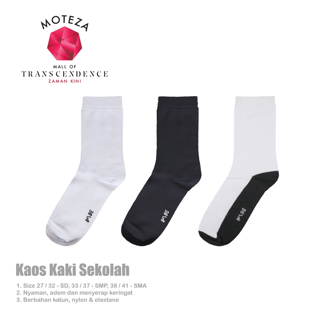 Moteza Kaos kaki Anak SEKOLAH | SD SMP SMA | Putih Telapak Hitam | Putih Polos | Hitam Polos | Katun - 1 Pcs