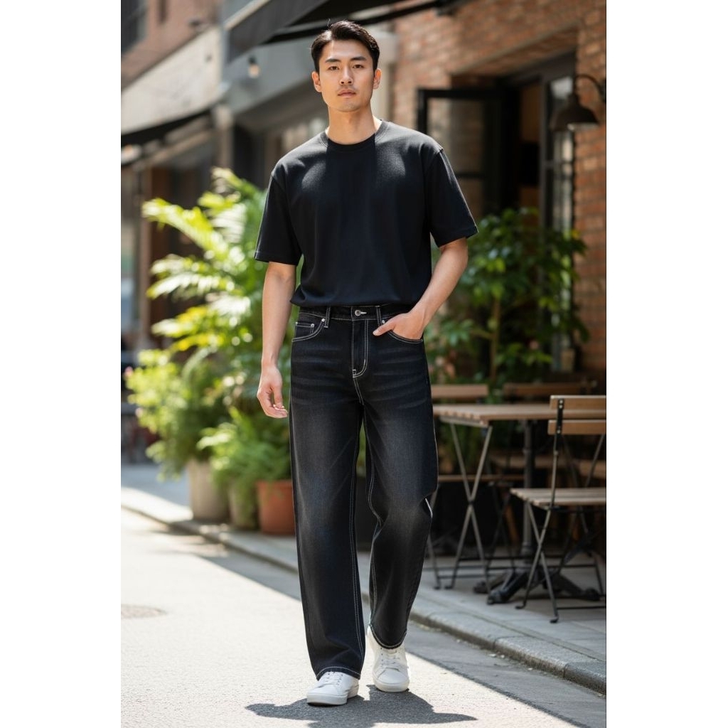 Celana Jeans Panjang Pria Koreanstyle Celana losefit Wisker Retro/Beggy Jeans Pria Gombrang