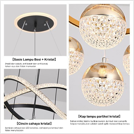 Lampu Hias Lampu Gantung Ruang Tamu 3 Warna Remote Control Meja Makan Lampu Hias Ruang Tamu Lampu Kristal Gantung Mewah