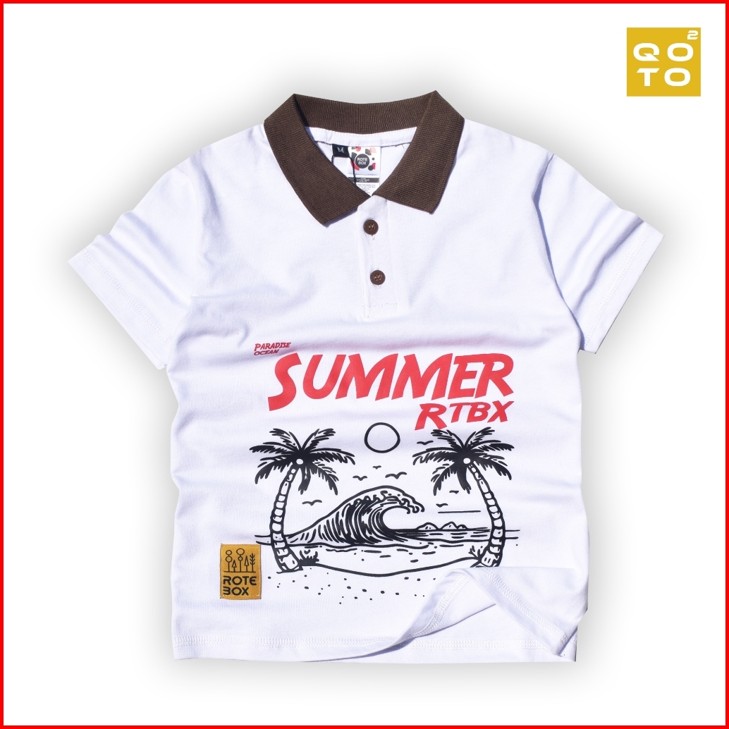 Baju Kaos Anak Laki-laki Polo Kerah Coklat - Motif Summer Pantai Usia 1-12 Tahun Cotton 30s Adem