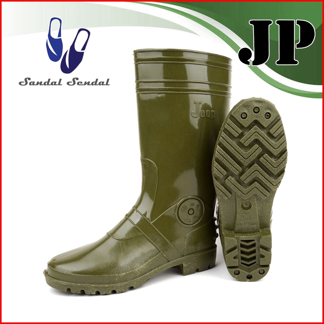 Sepatu Boot Tinggi Jp 8001 Hijau Jeep Karet Lokal Lentur Ringan Proyek