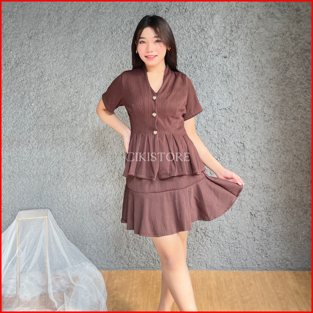 Cikistore - Florie Oneset Skort Pleats Knit Setelan Rok Celana Santai Casual Wanita
