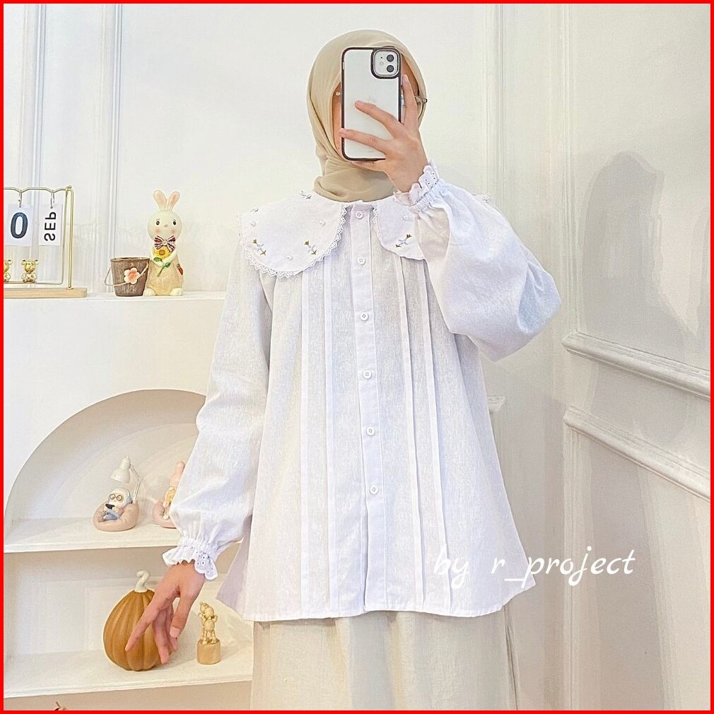 Realpict Atasan Bordir Linen Ukuran 5l Xxxl Xxl Xl L M S Pearly Shirt Atasan Lucu