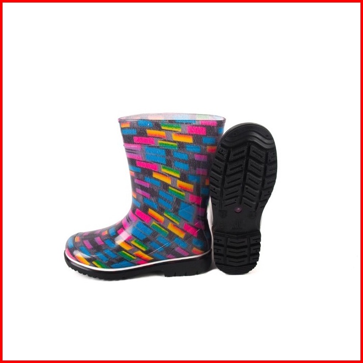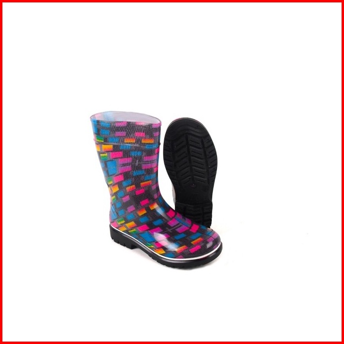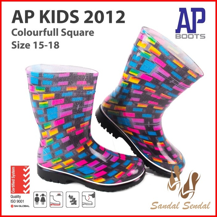 Sepatu Boot Anak Ap Boots 2012 Colorfull Square - Sepatu Boot Karet Anti Air Slip Ringan Nyaman Lentur Lokal