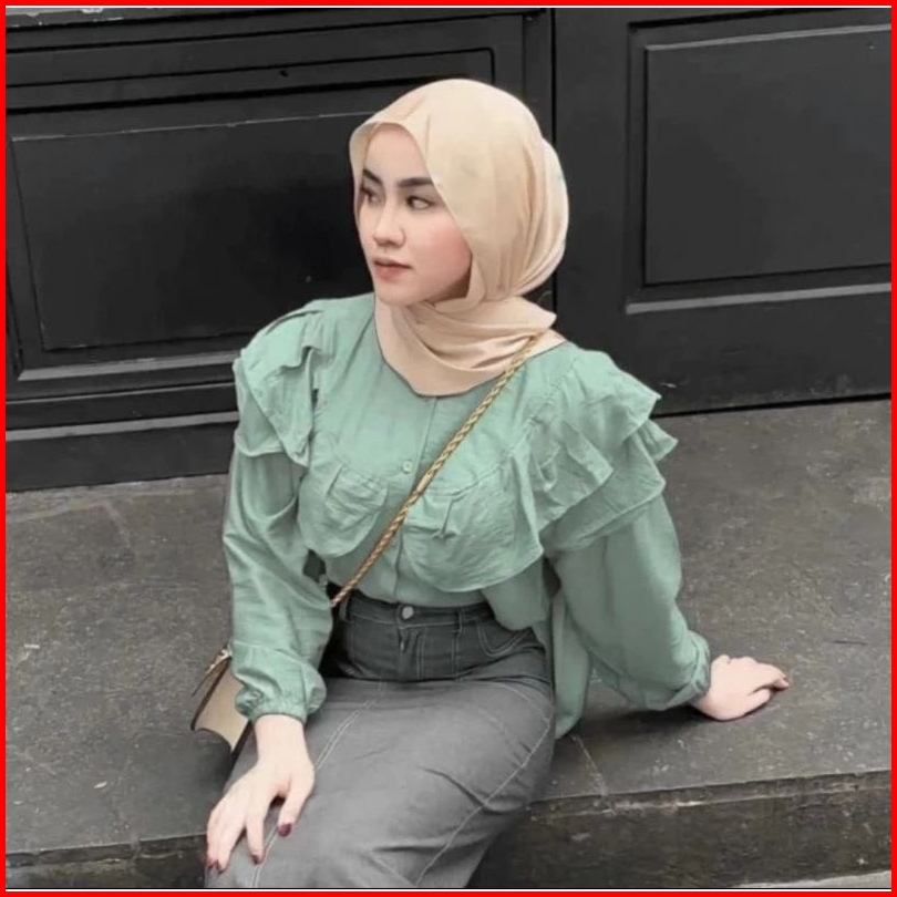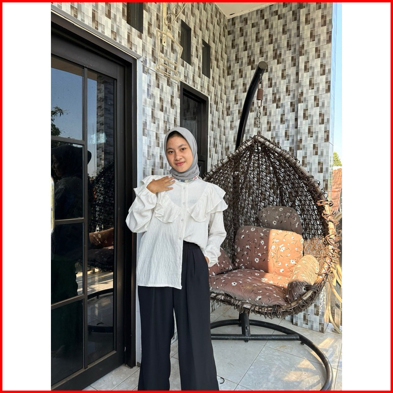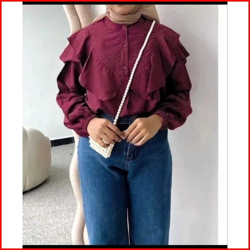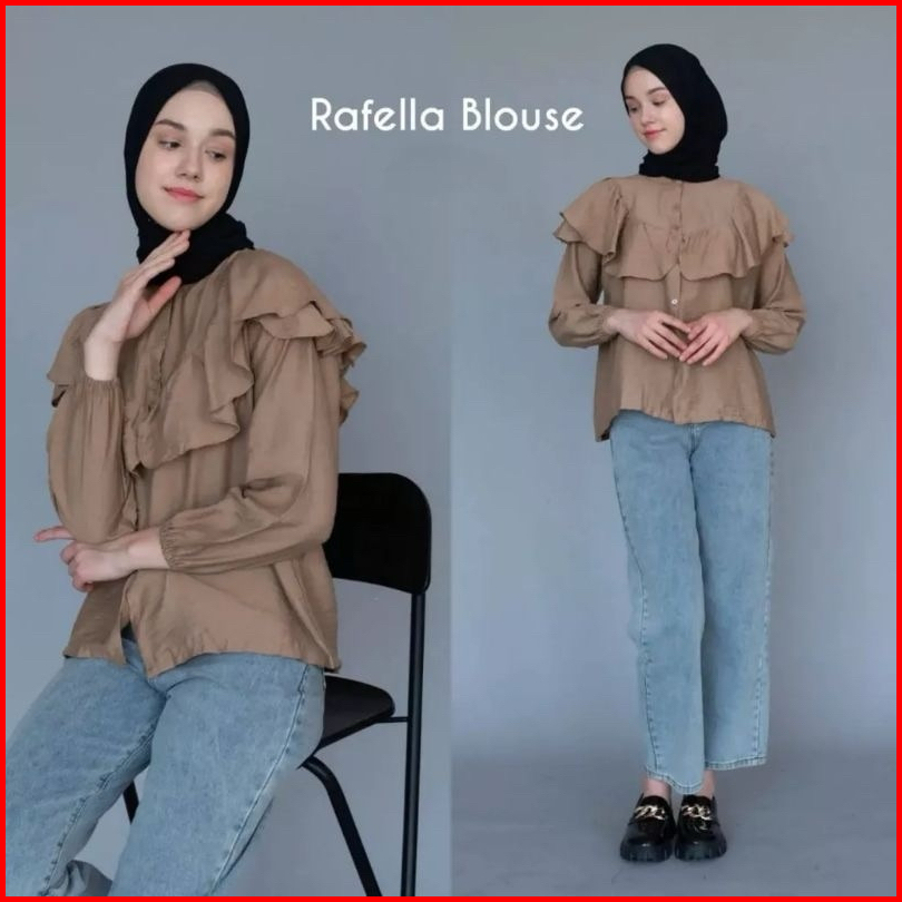 Blouse Ruffle Rafella Atasan Wanita Kemeja Polo Linen