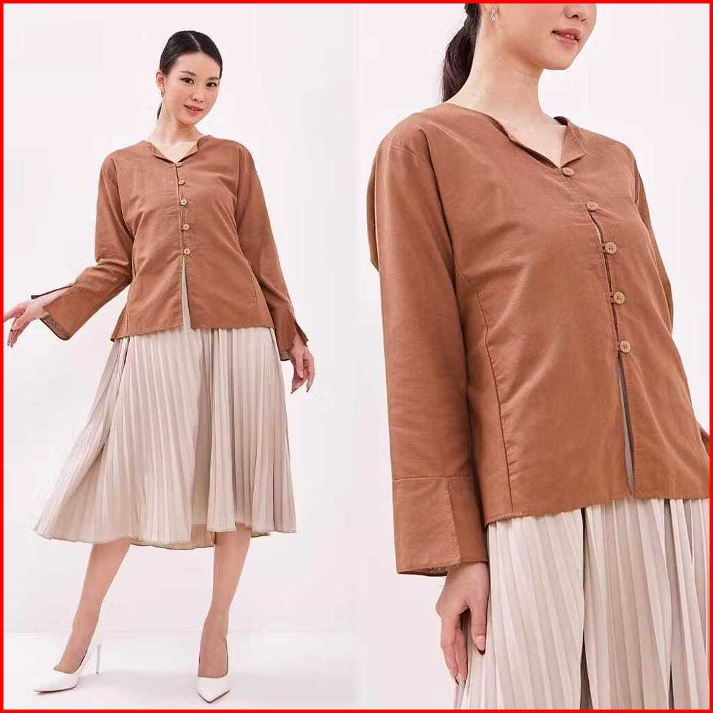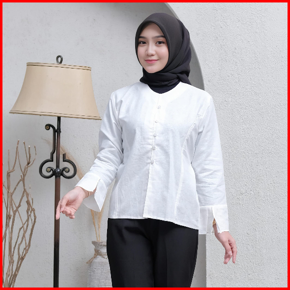 Lucy Top Blouse Linen Fit Body Atasan Wanita Polos Lengan Panjang Kemeja Slimfit Wanita Terbaru