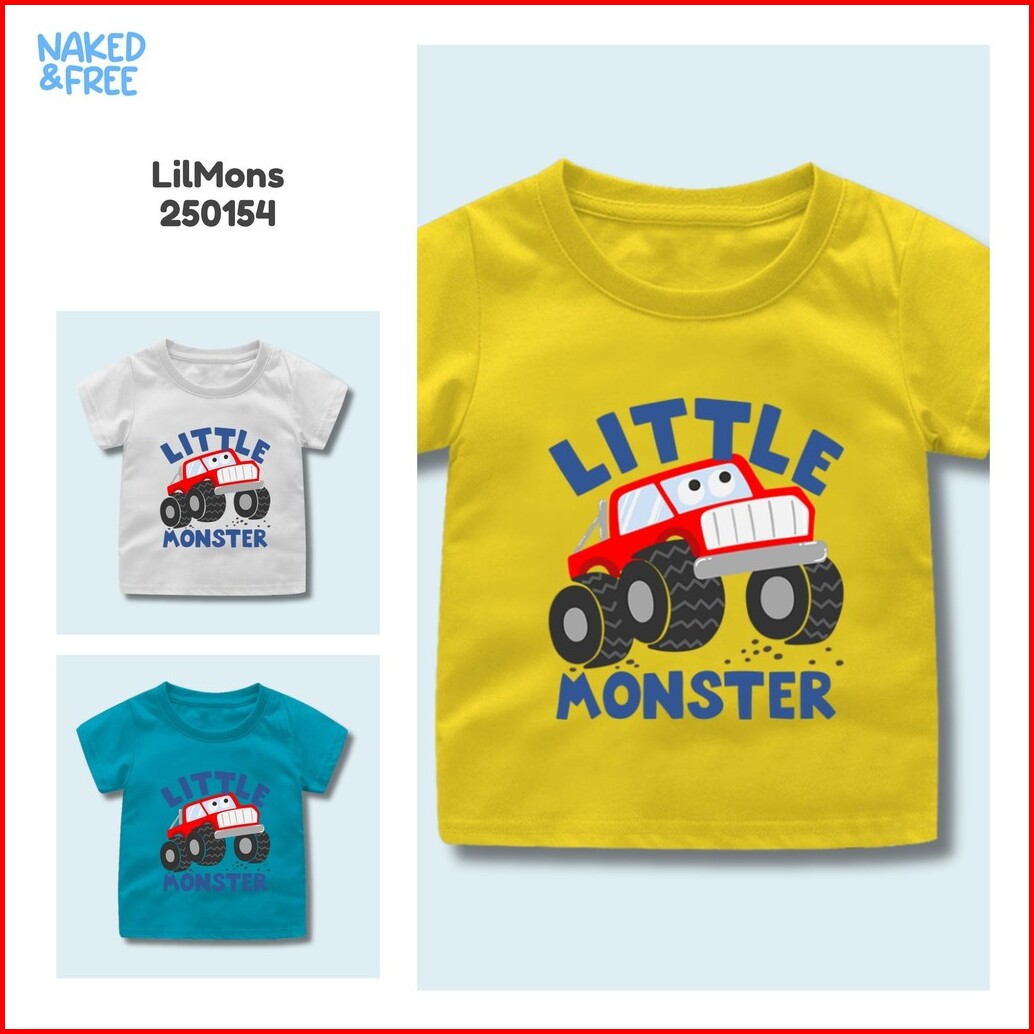 Naked Free Baju Kaos Anak Laki-laki Transport Series Little Truck Monster Fly Bahan Katun Combed