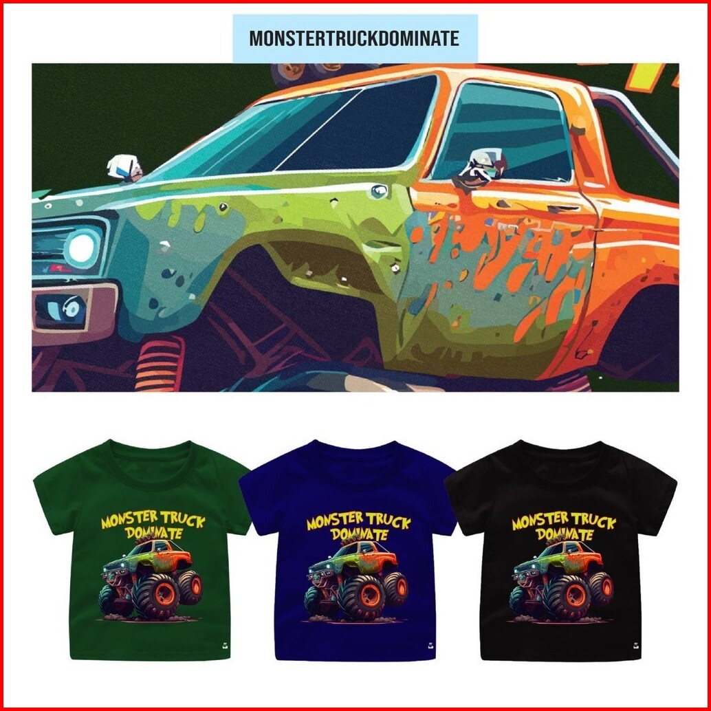 Naked Free Baju Kaos Bayi Dan Anak Laki-laki Transportation Series Truck Monster Bahan Katun 30s