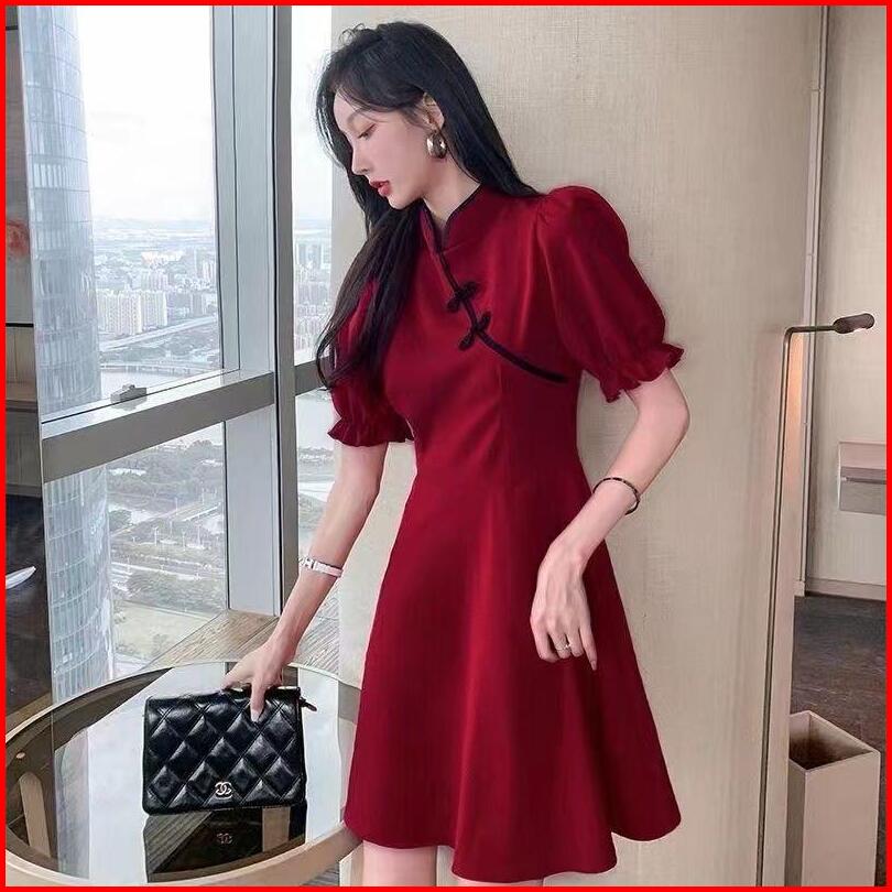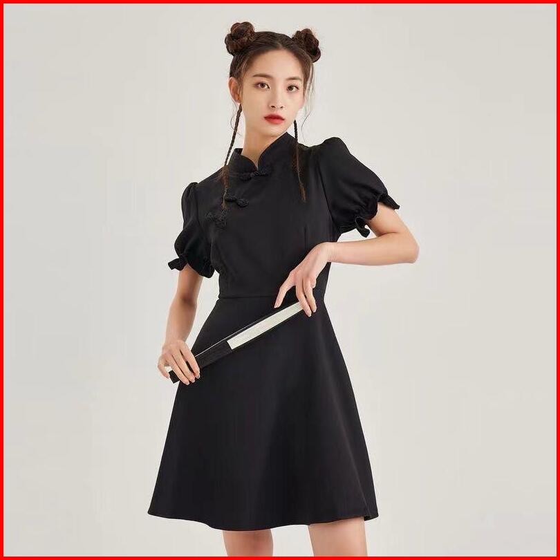 Vidia Midi Dress Cheongsam A Line Lengan Balon Puffy Kerah Qibao