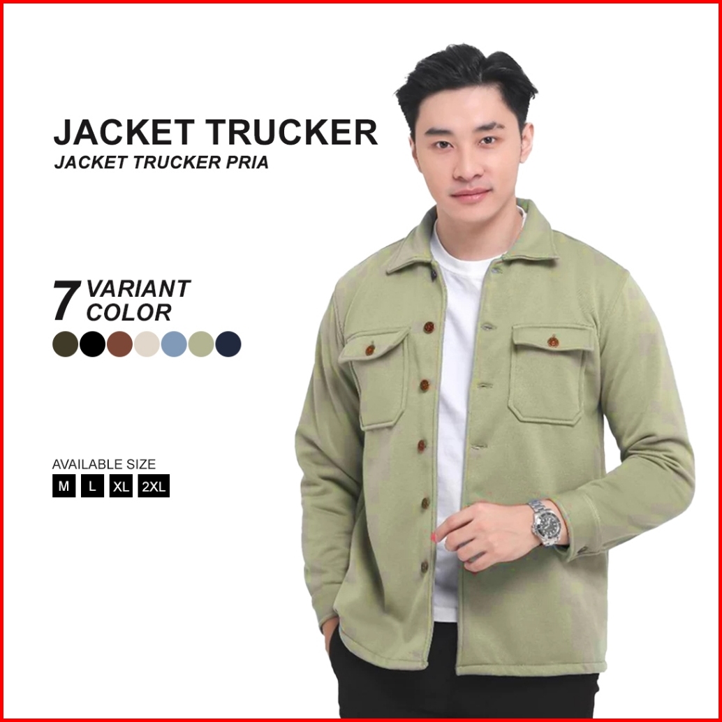 Broguy Jaket Pria Trucker Fleece Tebal - Khaki
