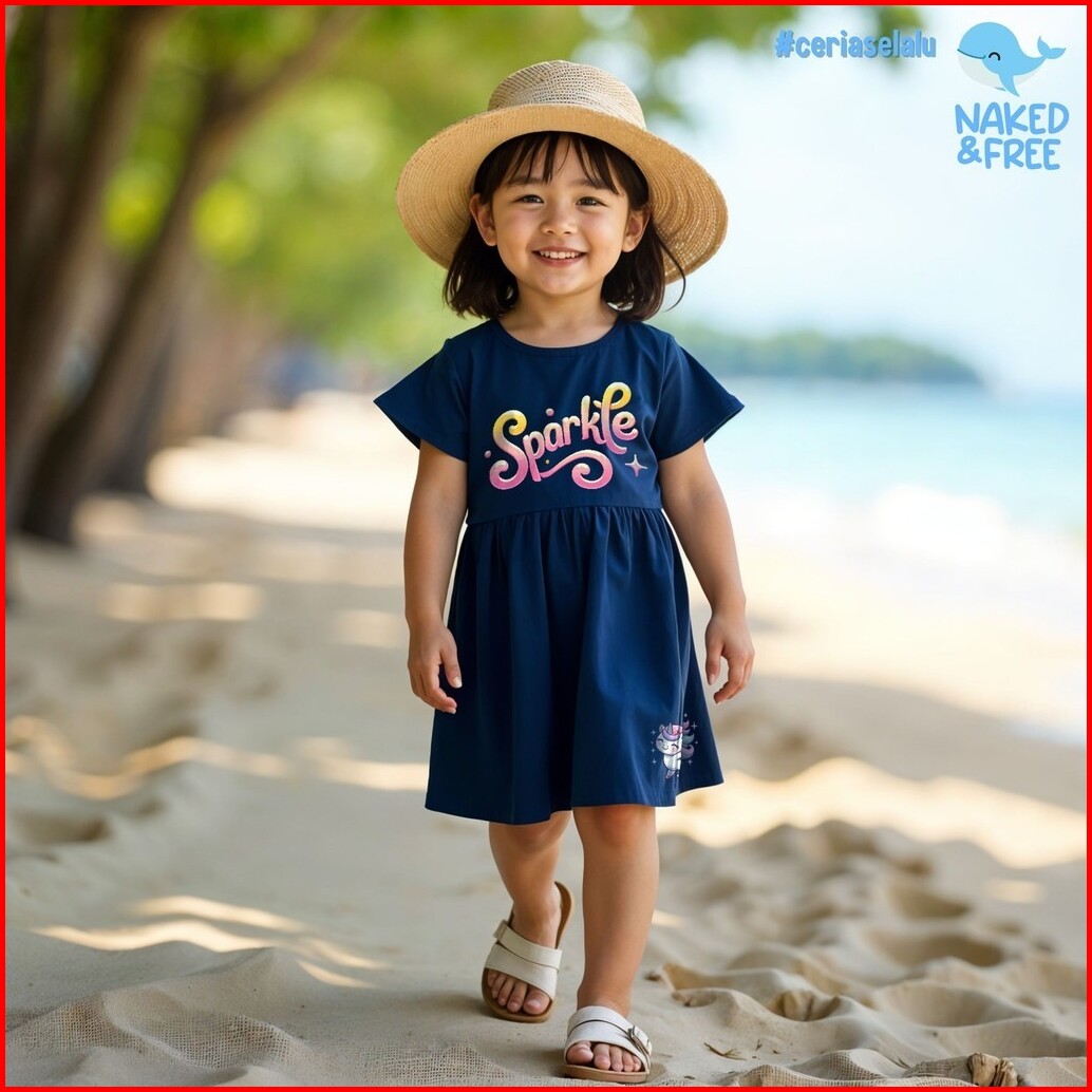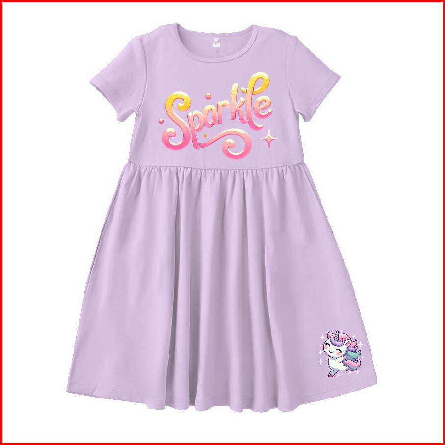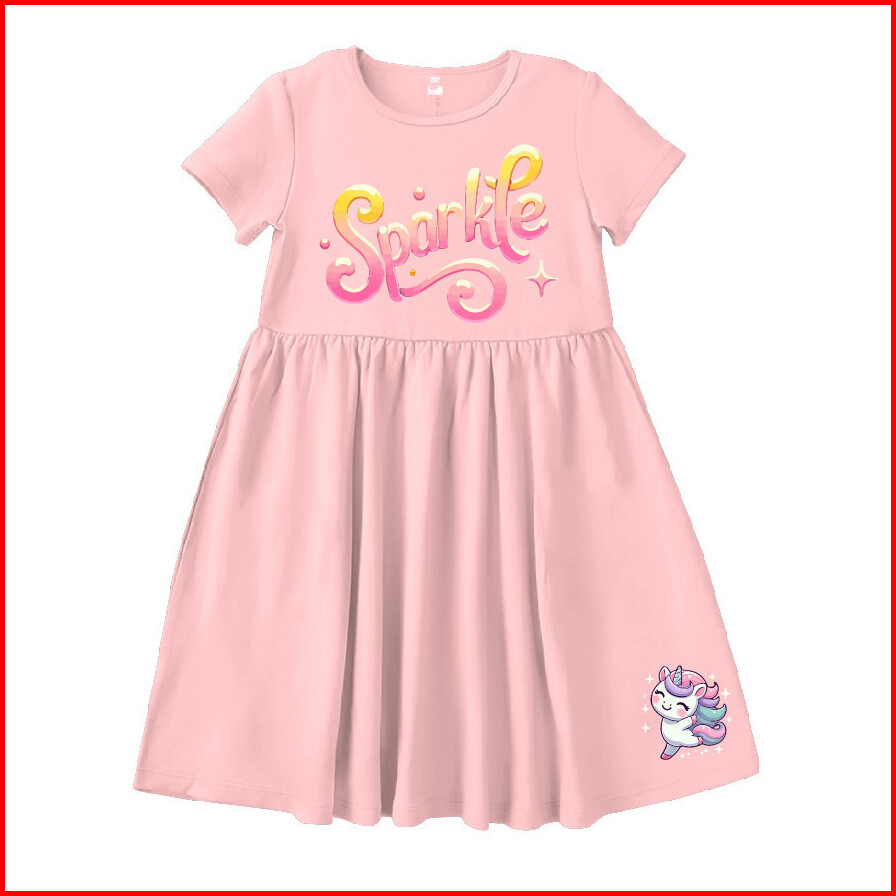 Naked Free Qiera Dress Anak Perempuan Unicorn Series Sparkle Flow Uni Bahan Katun Combed 30s Uni-1